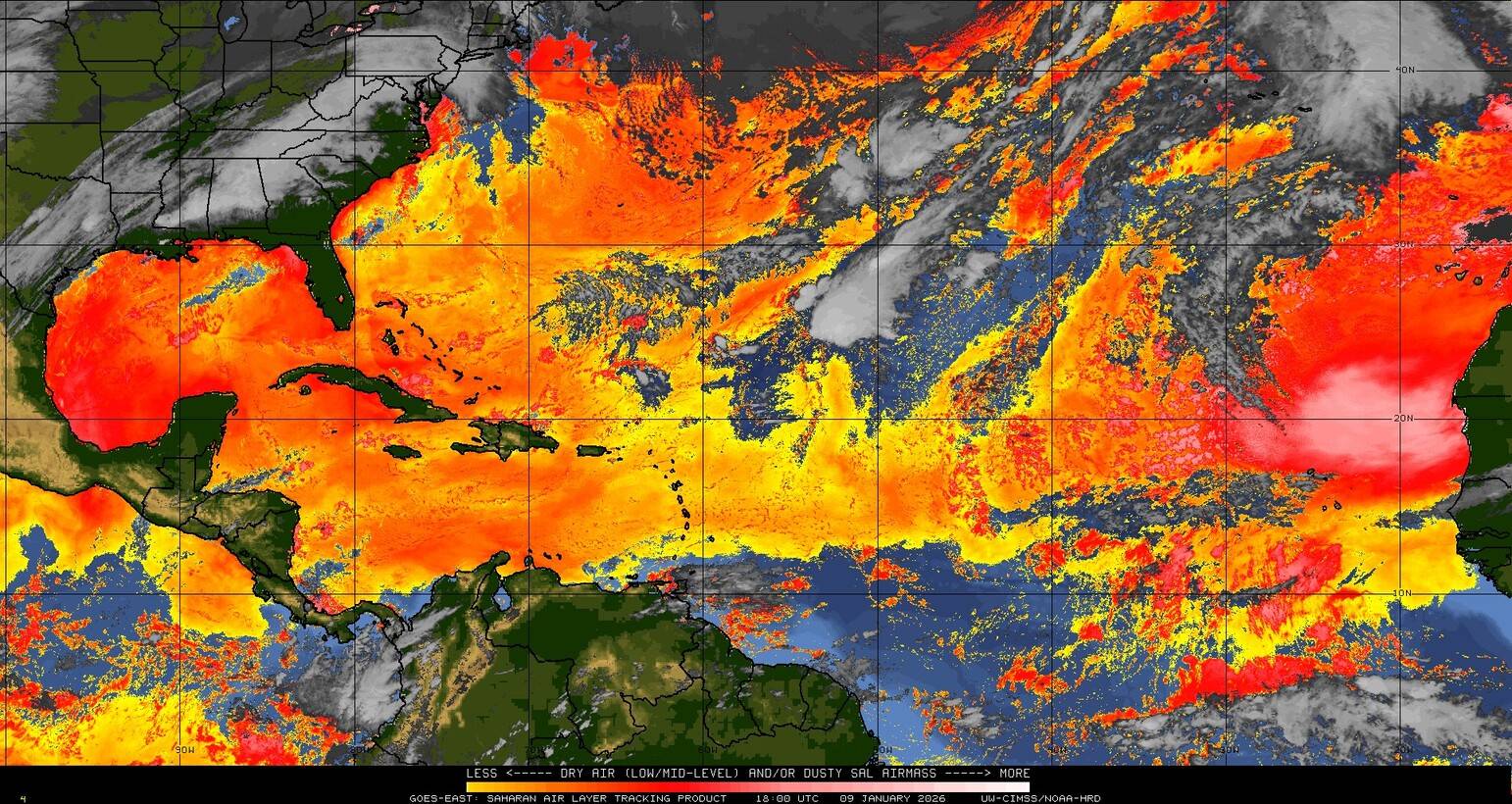 Il n’y a pas de cyclone ni de système surveillé par le NHC en Atlantique. Nous ne sommes pas actuellement en période cyclonique