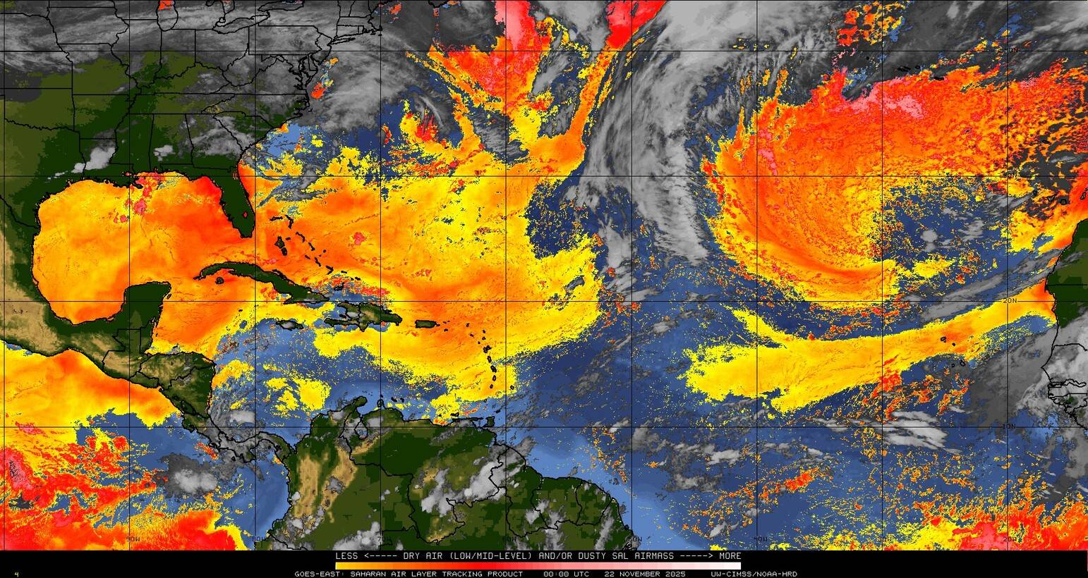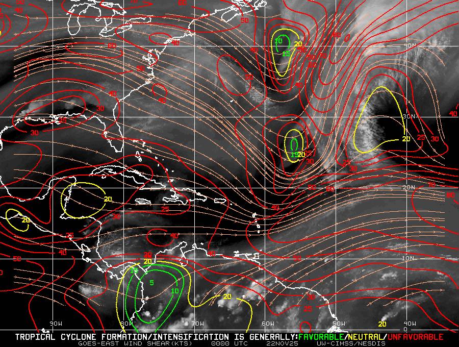 Il n’y a pas de cyclone ni de système surveillé par le NHC en Atlantique.