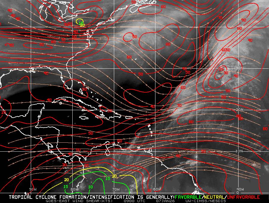 Il n’y a pas de cyclone ni de système surveillé par le NHC en Atlantique. Nous ne sommes pas actuellement en période cyclonique