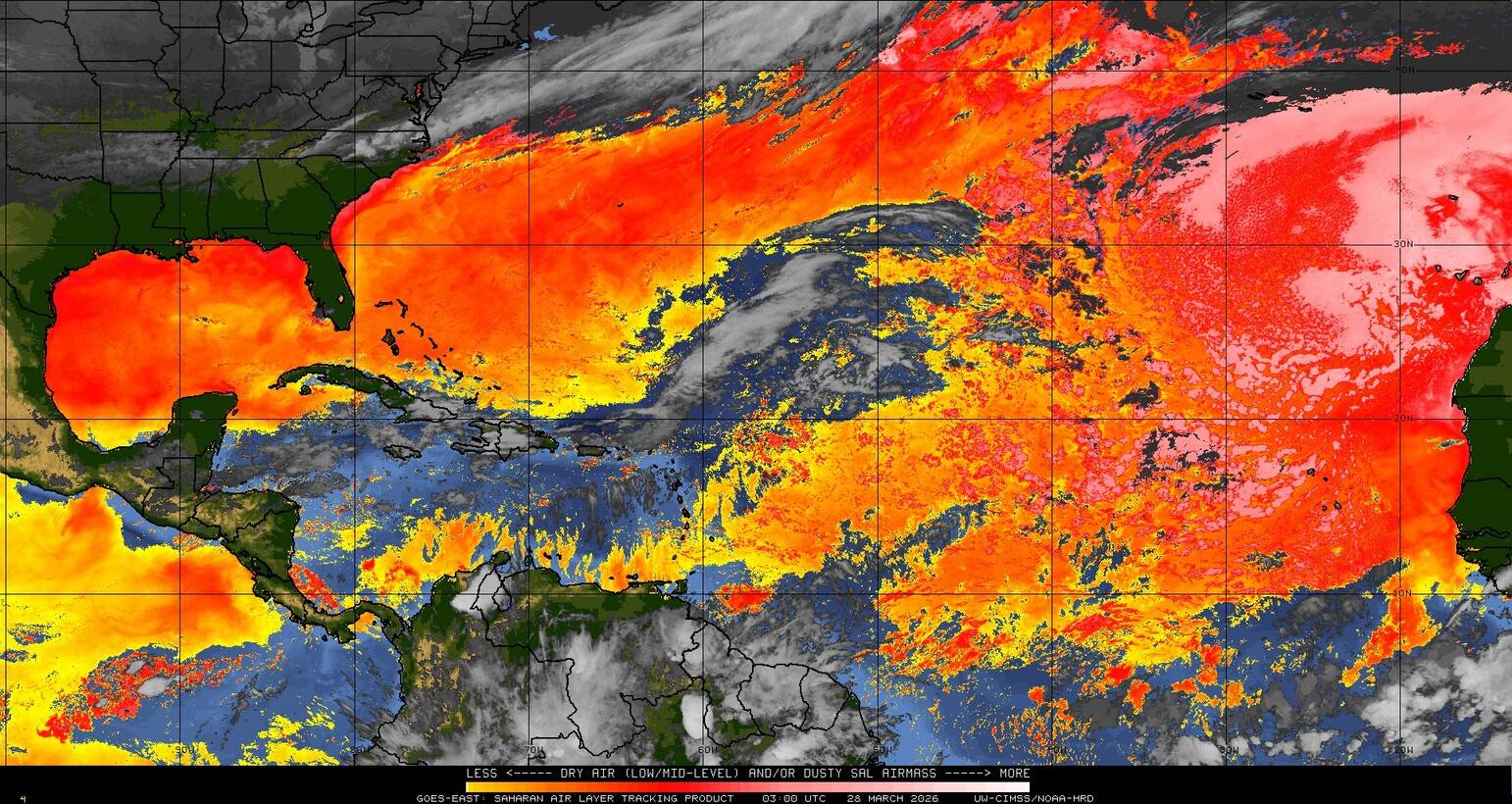 Il n’y a pas de cyclone ni de système surveillé par le NHC en Atlantique. Nous ne sommes pas actuellement en période cyclonique