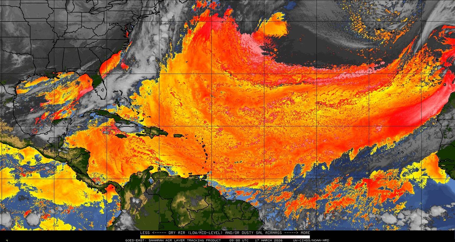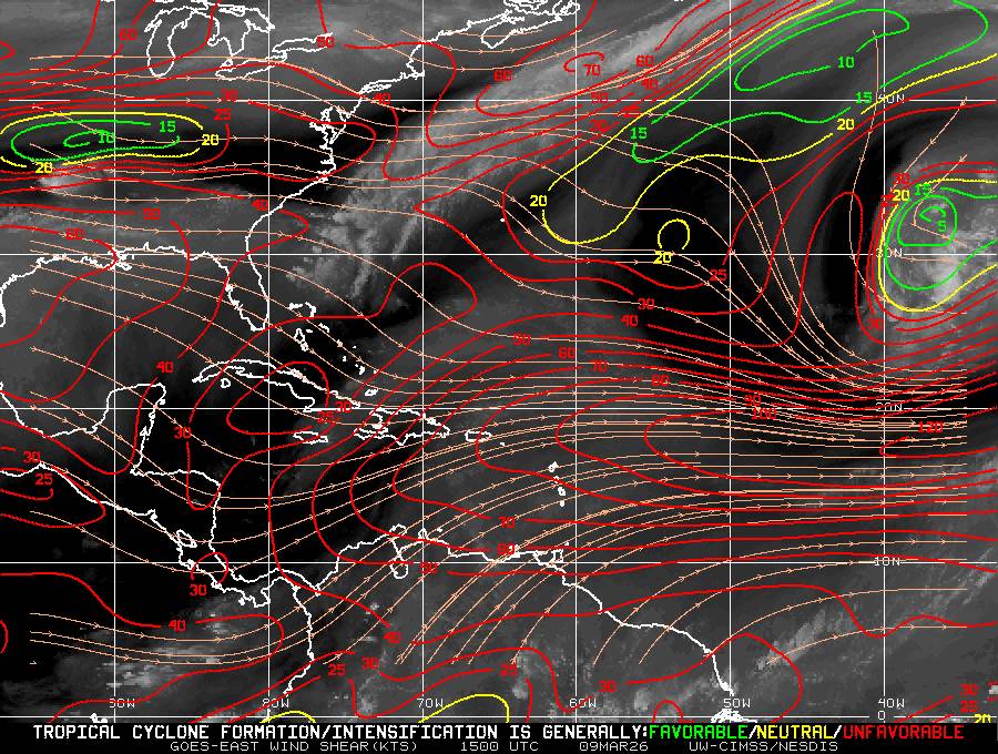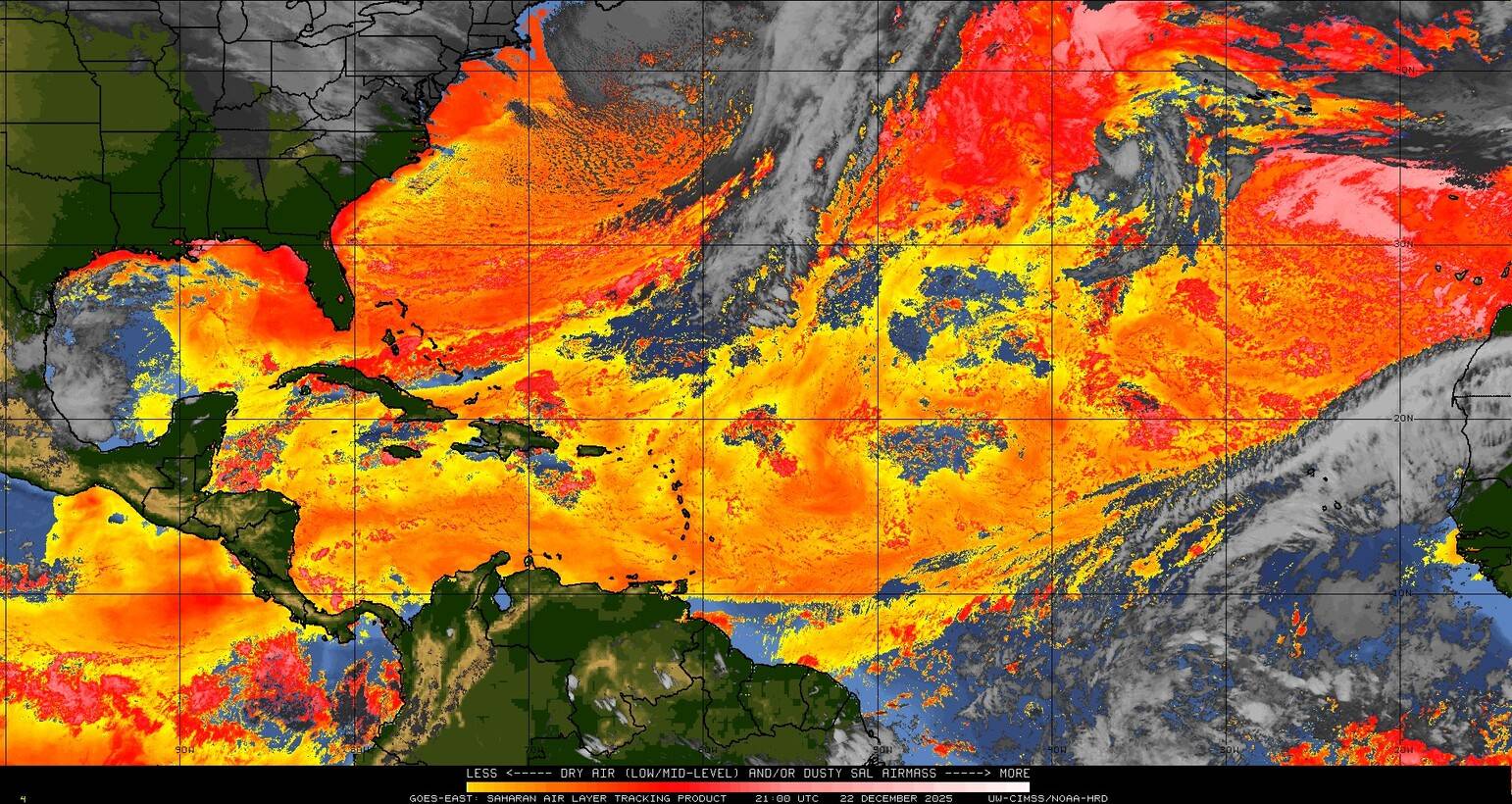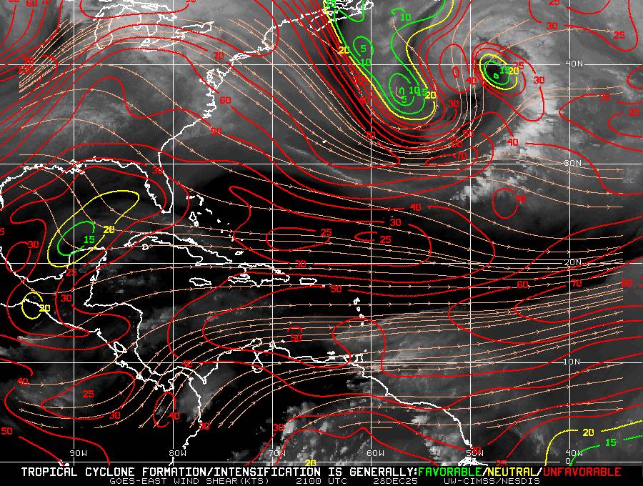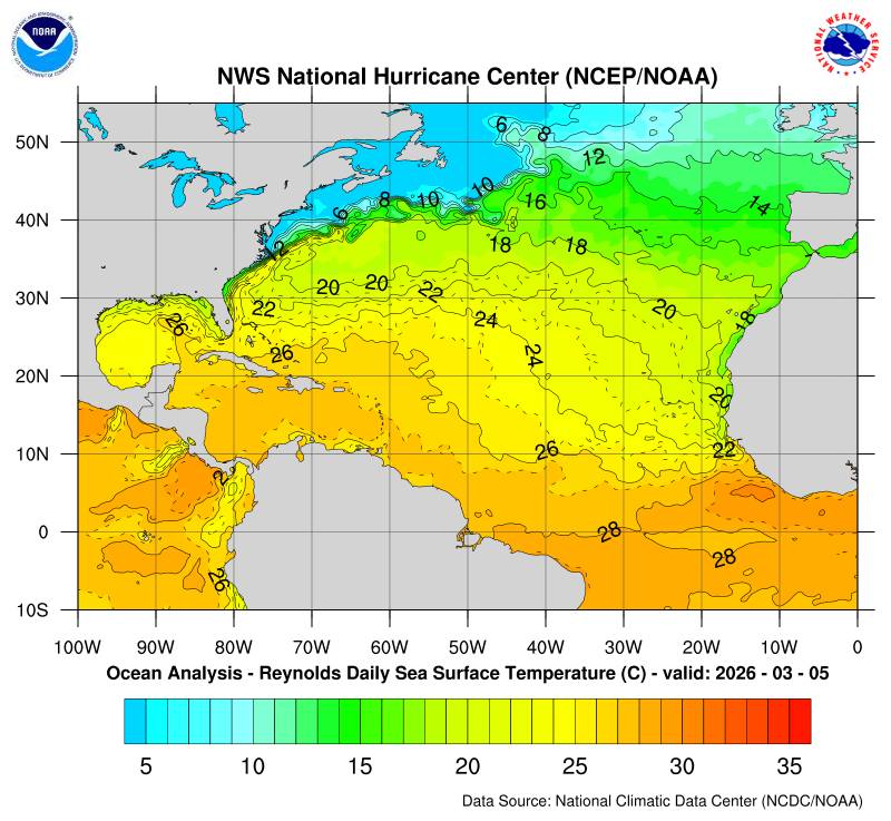 Il n’y a pas de cyclone ni de système surveillé par le NHC en Atlantique. Nous ne sommes pas actuellement en période cyclonique