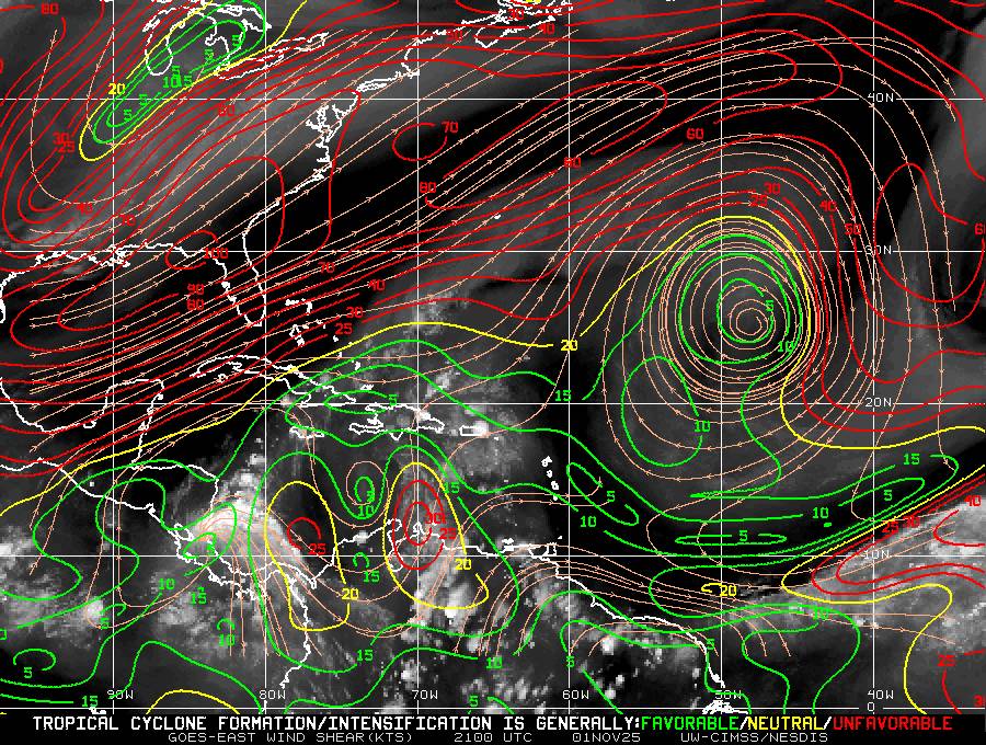 Il n’y a pas de cyclone ni de système surveillé par le NHC en Atlantique.