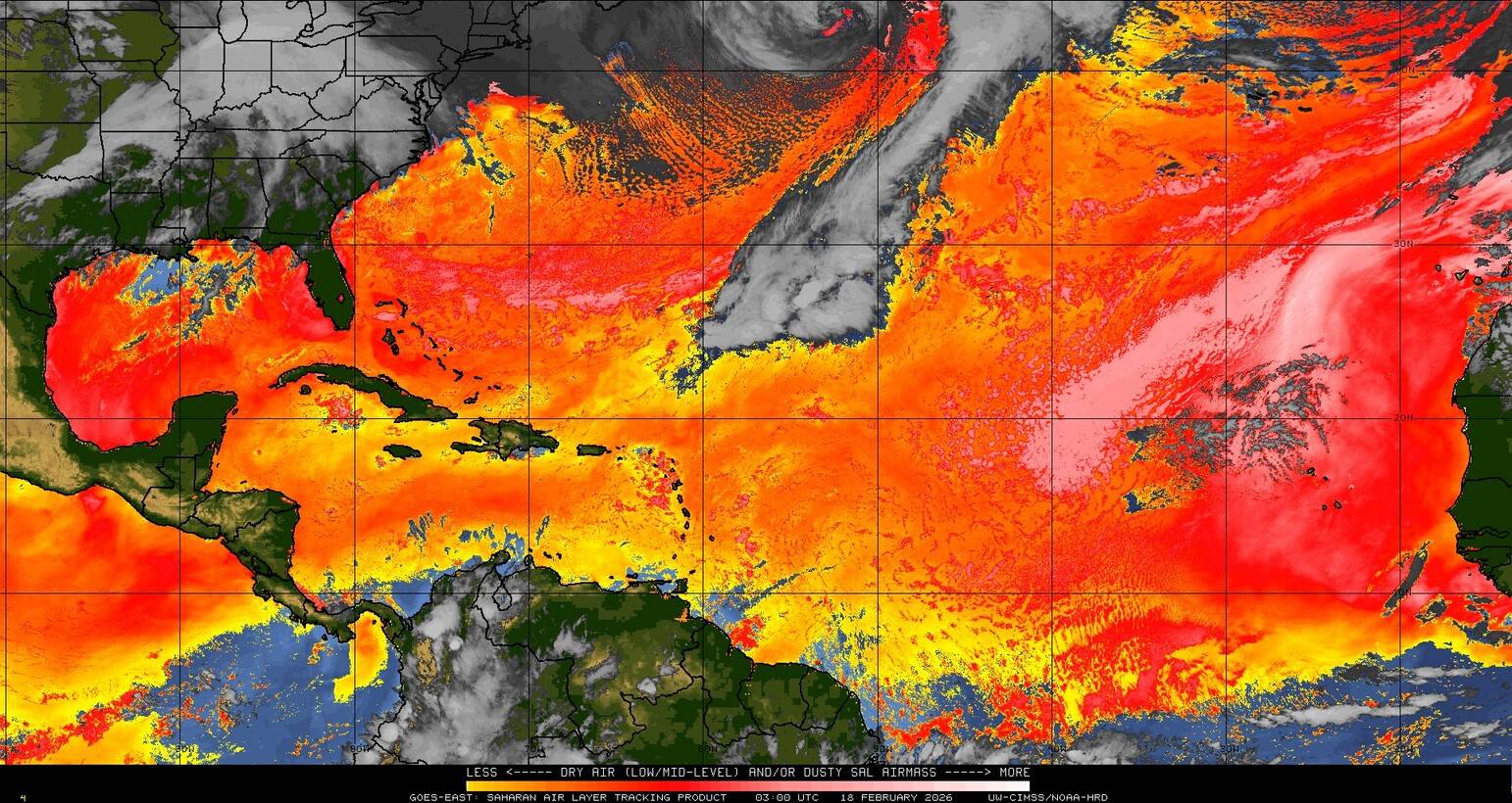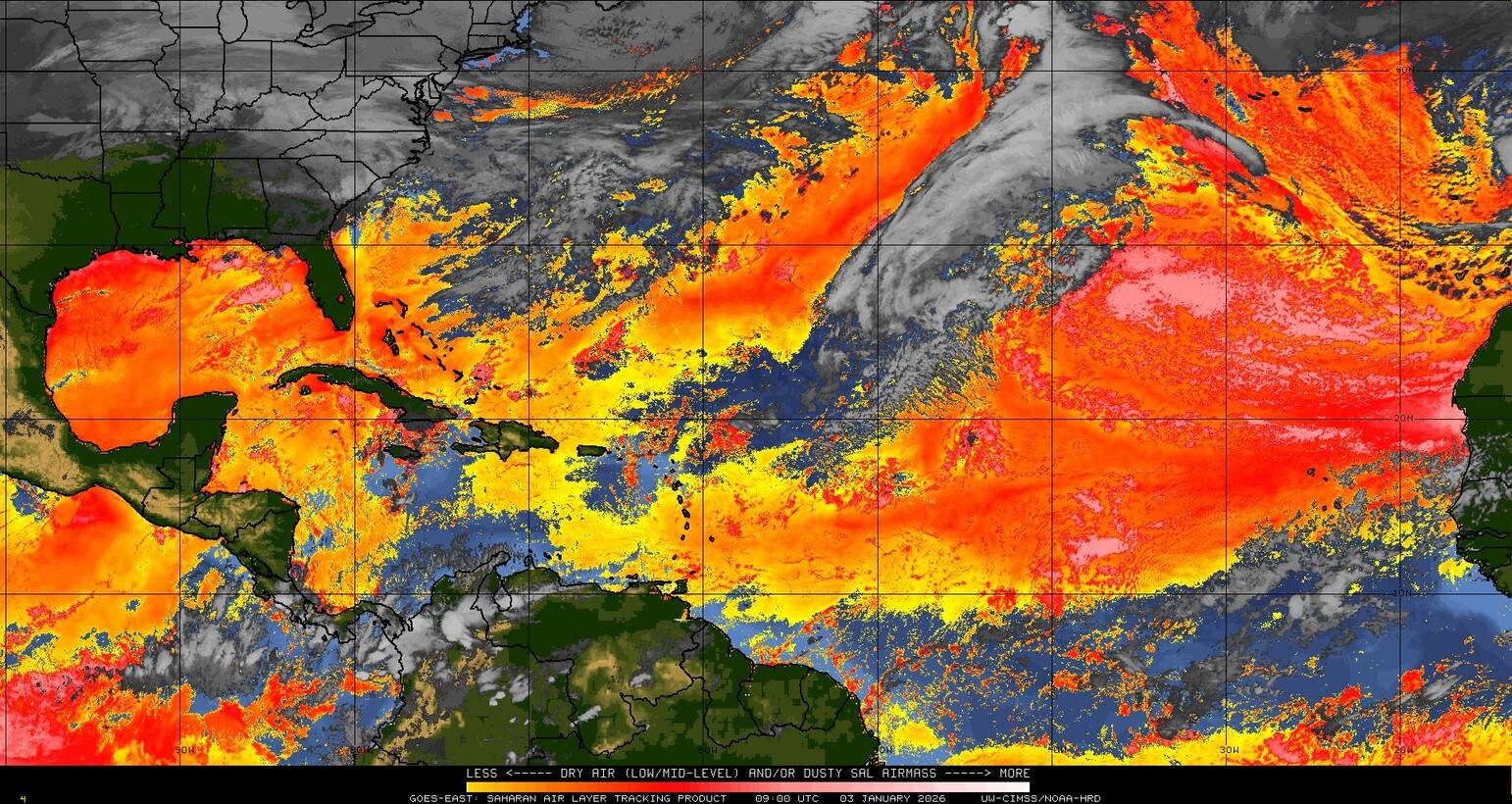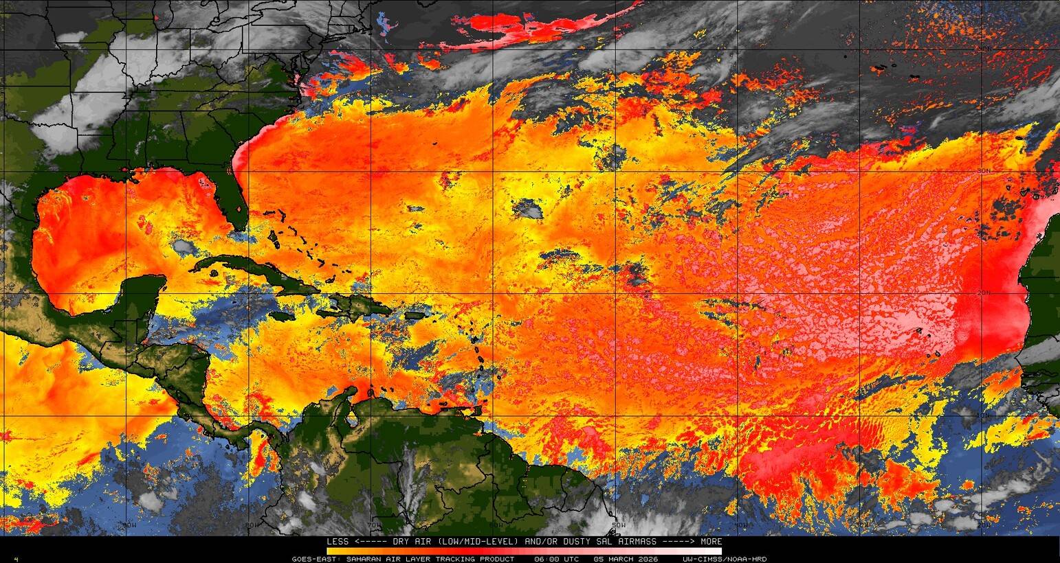 Il n’y a pas de cyclone ni de système surveillé par le NHC en Atlantique. Nous ne sommes pas actuellement en période cyclonique