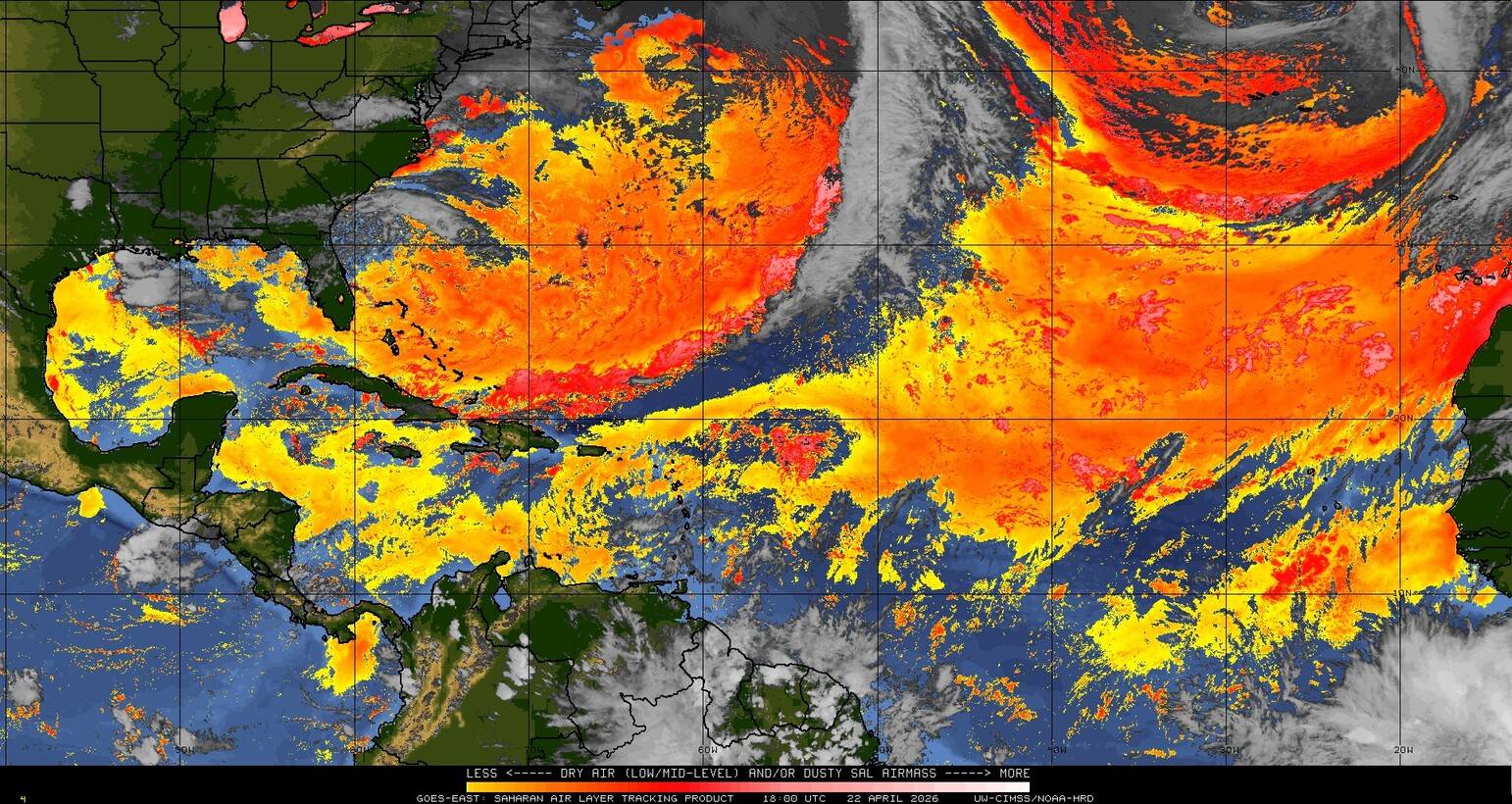 Il n’y a pas de cyclone ni de système surveillé par le NHC en Atlantique. Nous ne sommes pas actuellement en période cyclonique