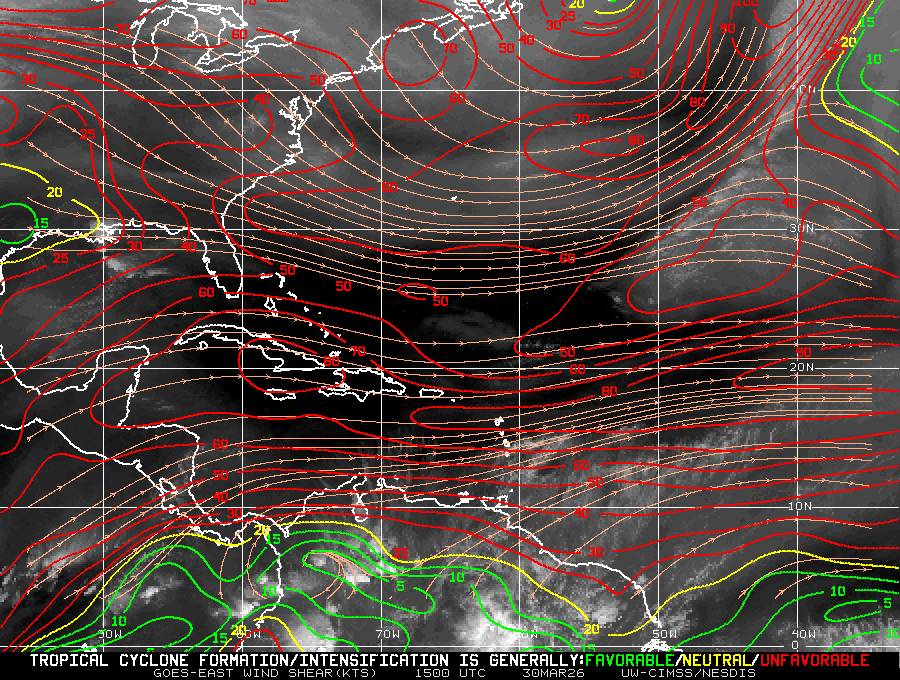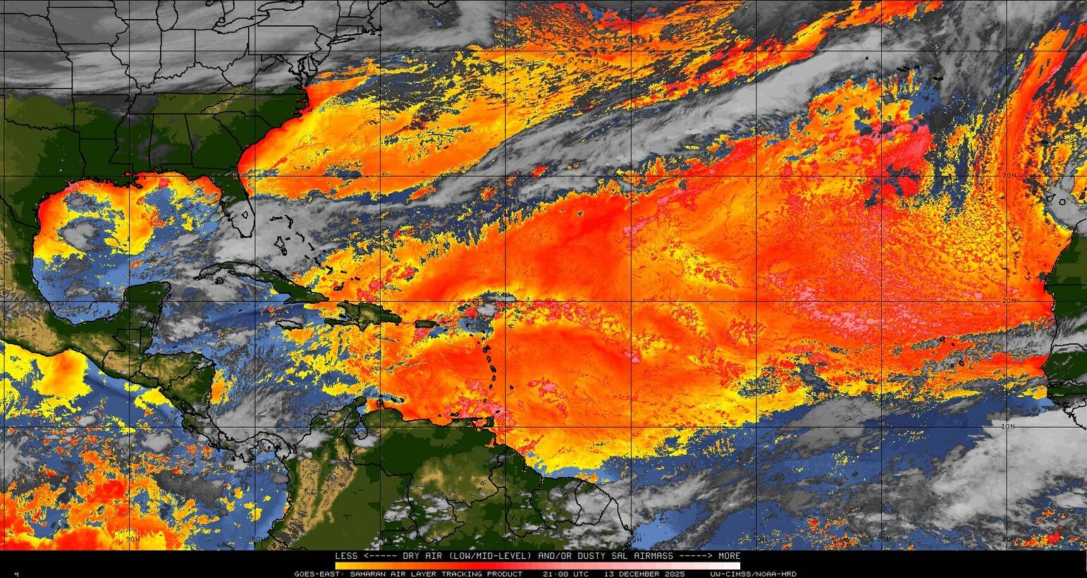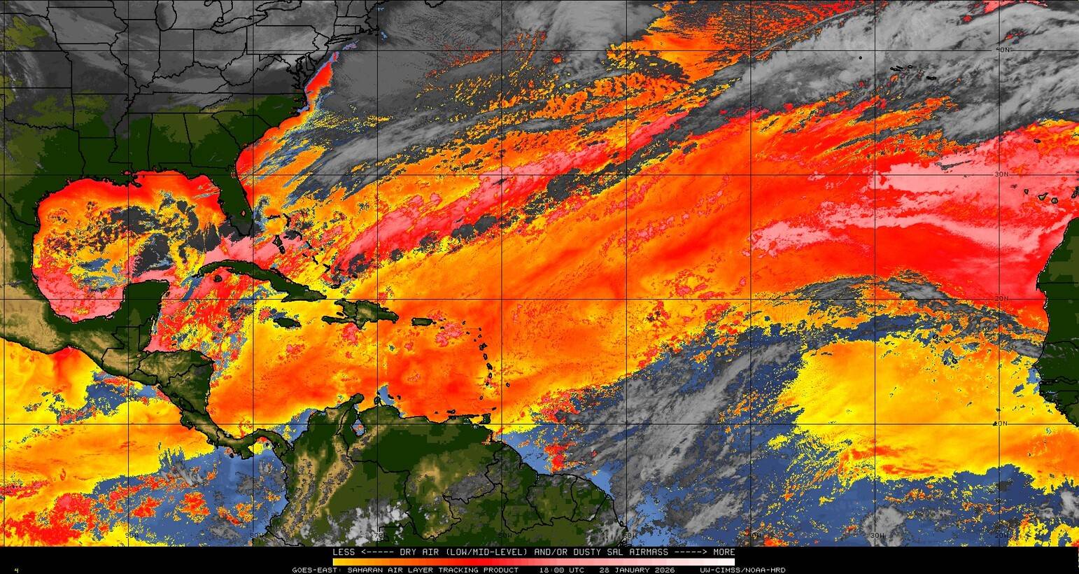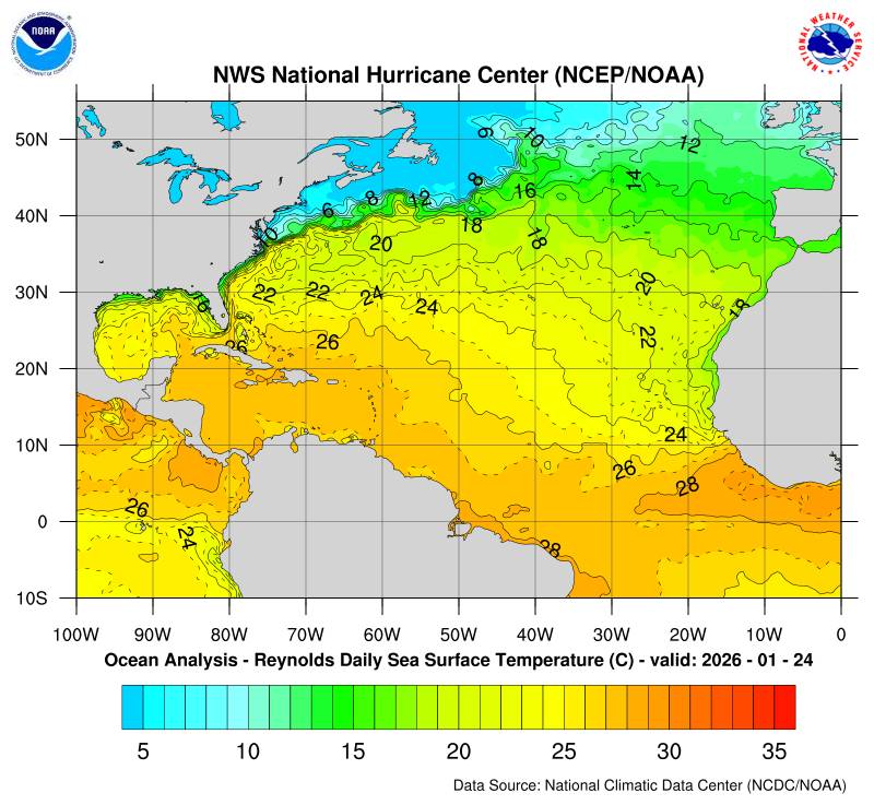 Il n’y a pas de cyclone ni de système surveillé par le NHC en Atlantique. Nous ne sommes pas actuellement en période cyclonique