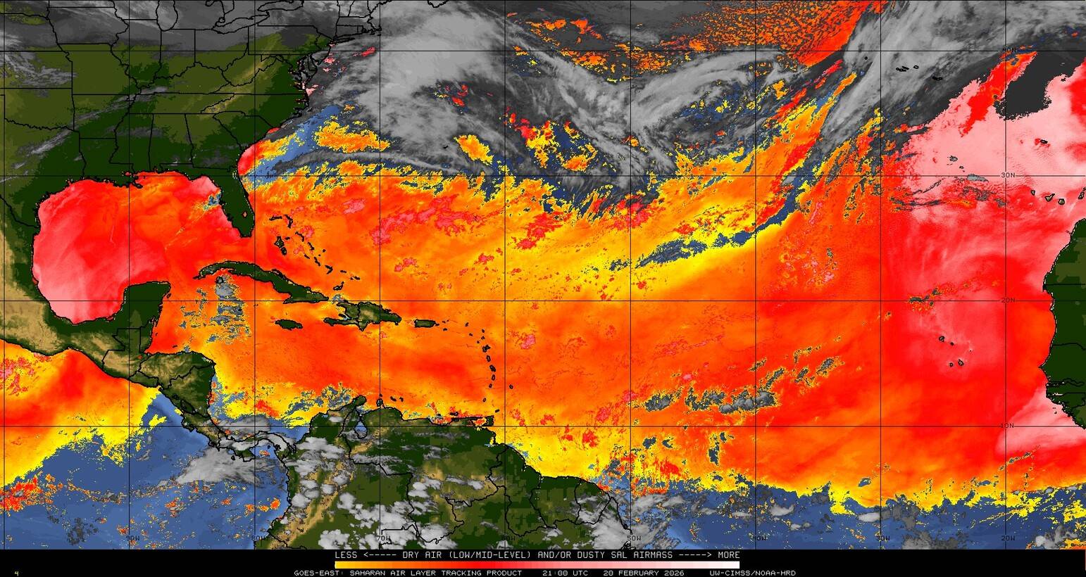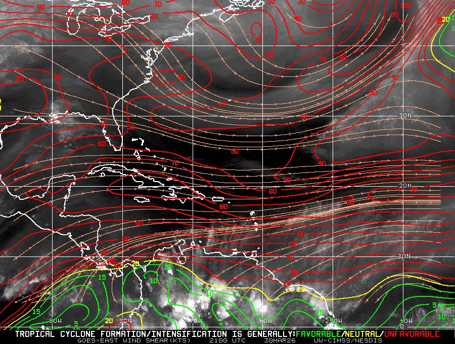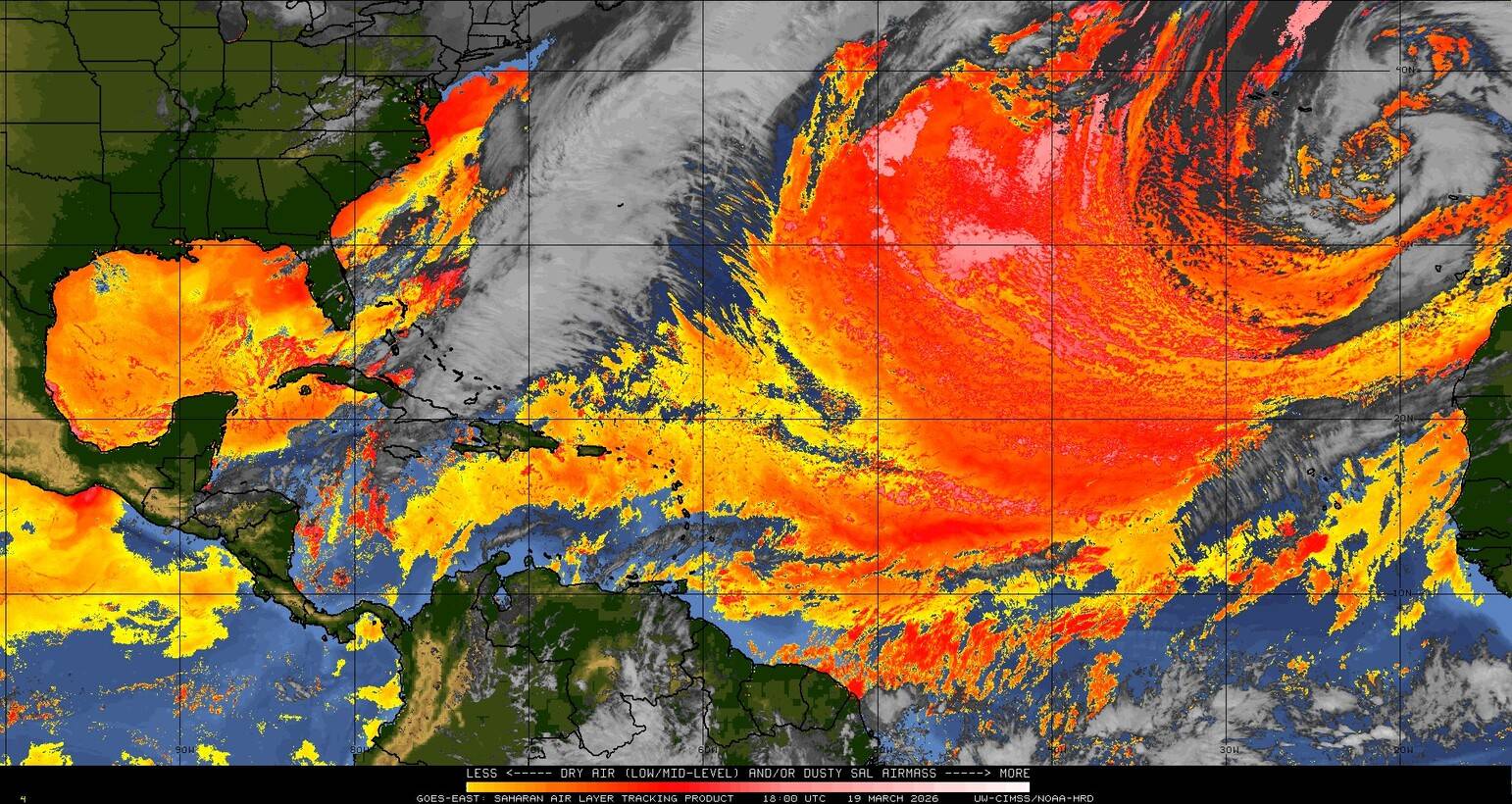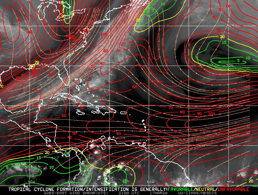 Il n’y a pas de cyclone ni de système surveillé par le NHC en Atlantique. Nous ne sommes pas actuellement en période cyclonique
