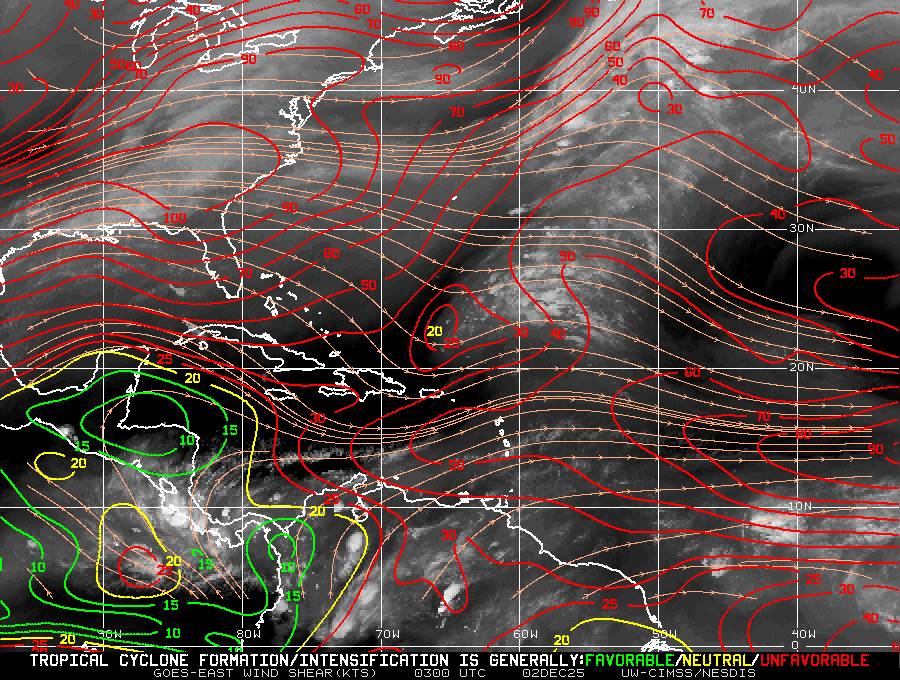 Il n’y a pas de cyclone ni de système surveillé par le NHC en Atlantique. Nous ne sommes pas actuellement en période cyclonique
