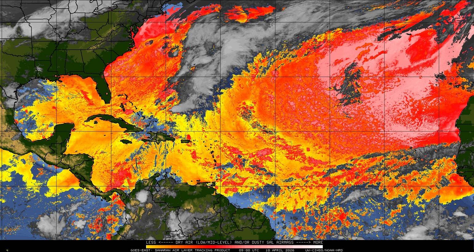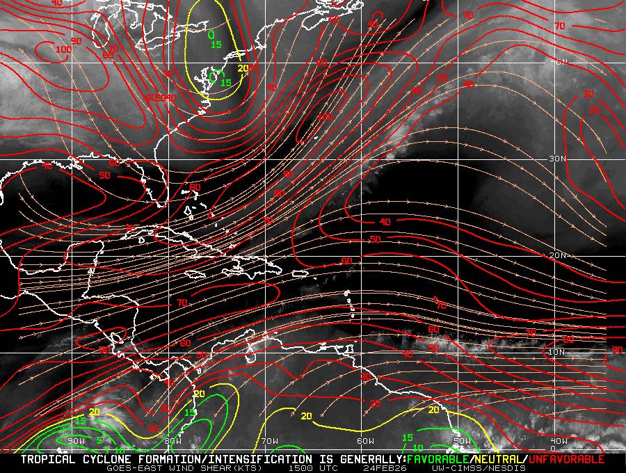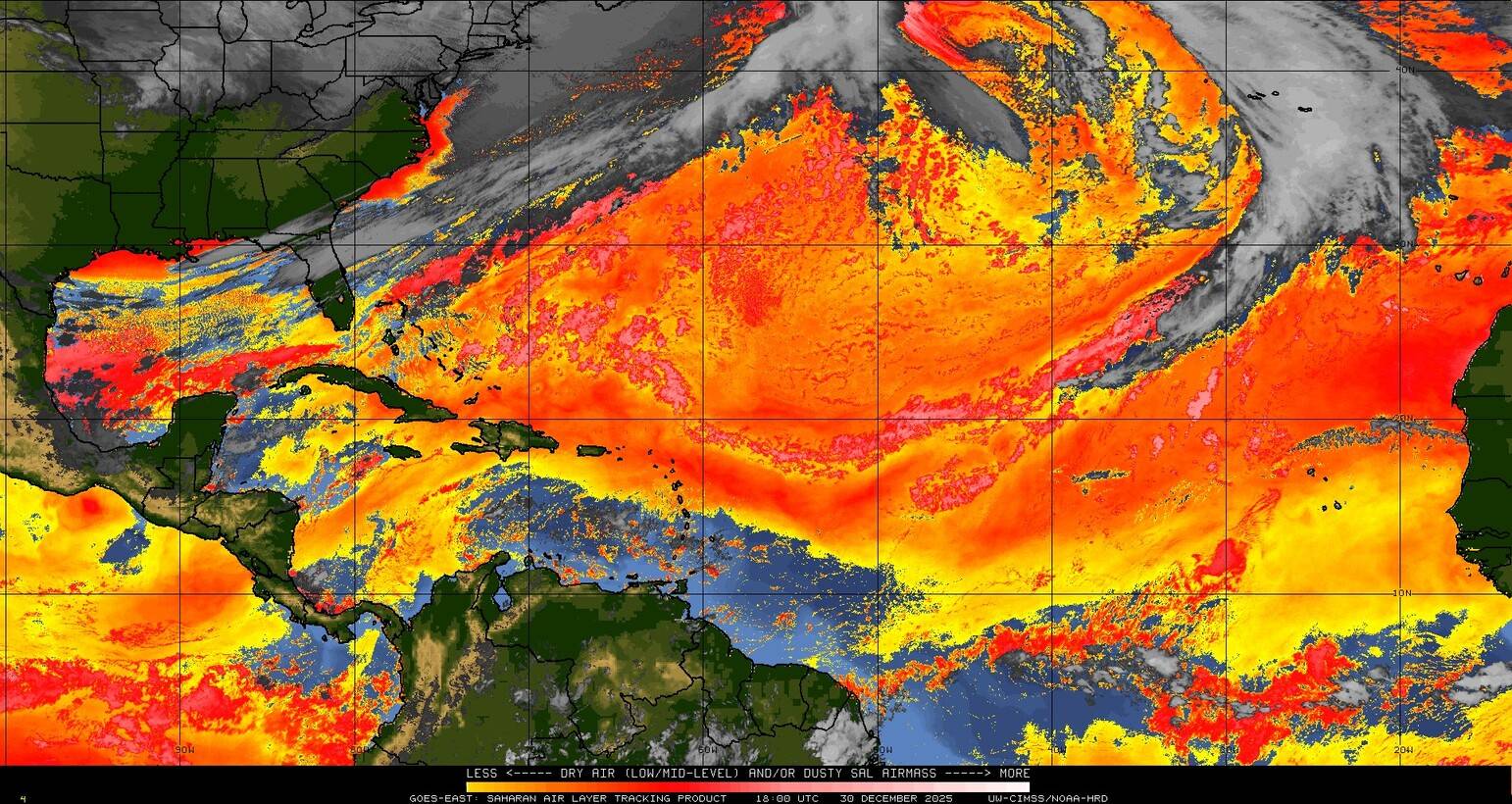Il n’y a pas de cyclone ni de système surveillé par le NHC en Atlantique. Nous ne sommes pas actuellement en période cyclonique