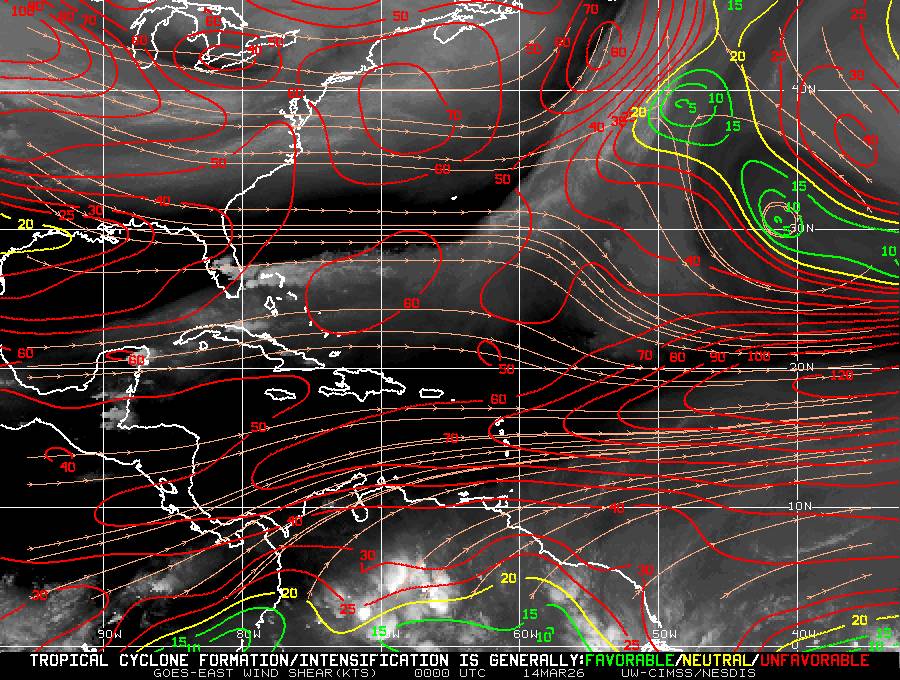 Il n’y a pas de cyclone ni de système surveillé par le NHC en Atlantique. Nous ne sommes pas actuellement en période cyclonique