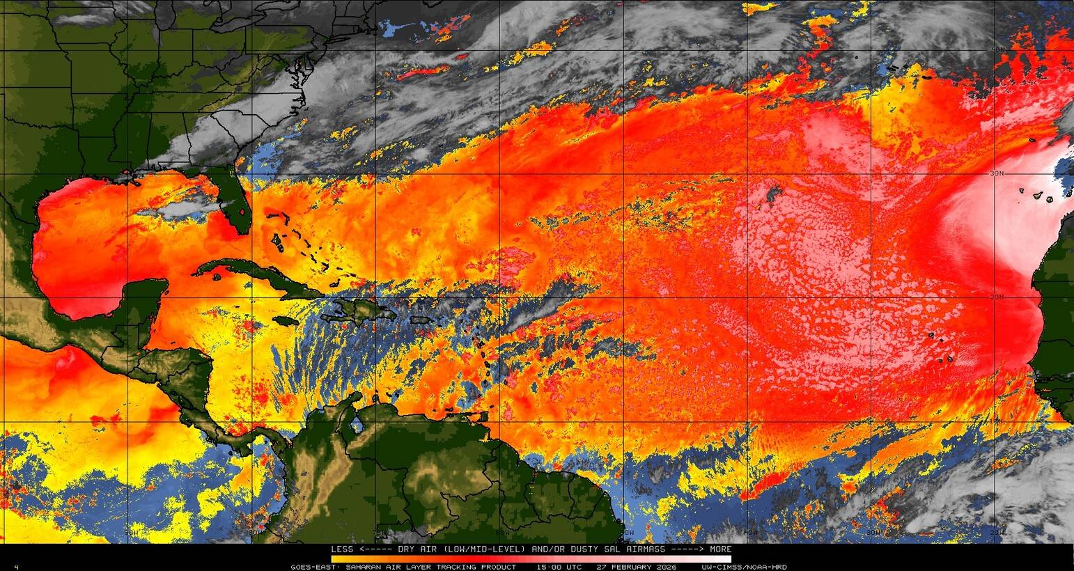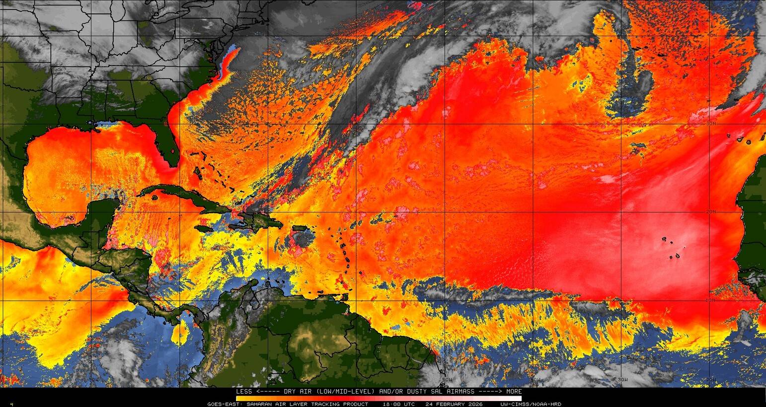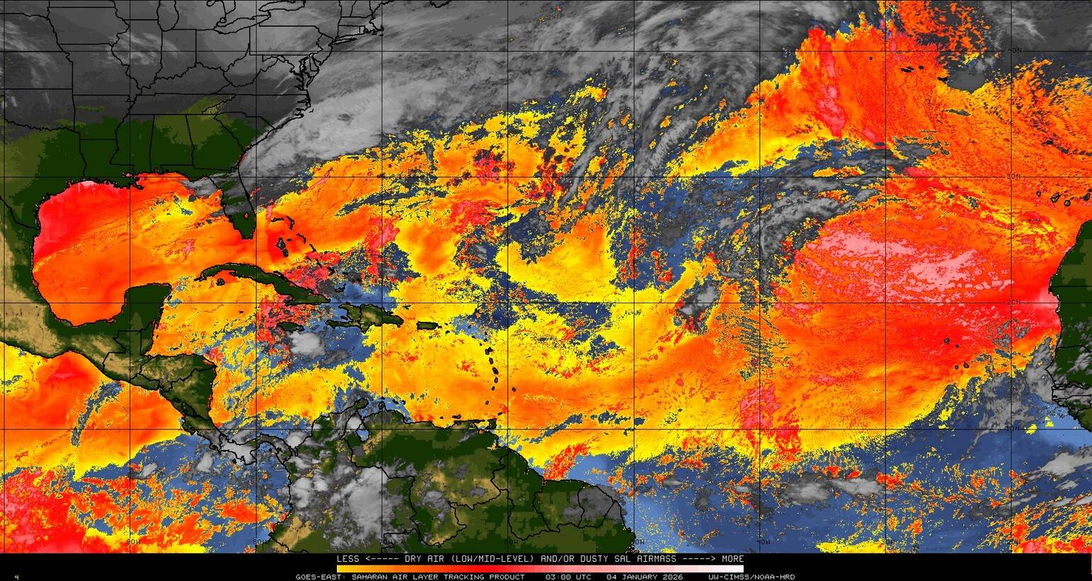 Il n’y a pas de cyclone ni de système surveillé par le NHC en Atlantique. Nous ne sommes pas actuellement en période cyclonique