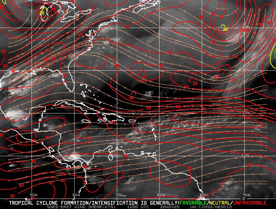 Il n’y a pas de cyclone ni de système surveillé par le NHC en Atlantique.