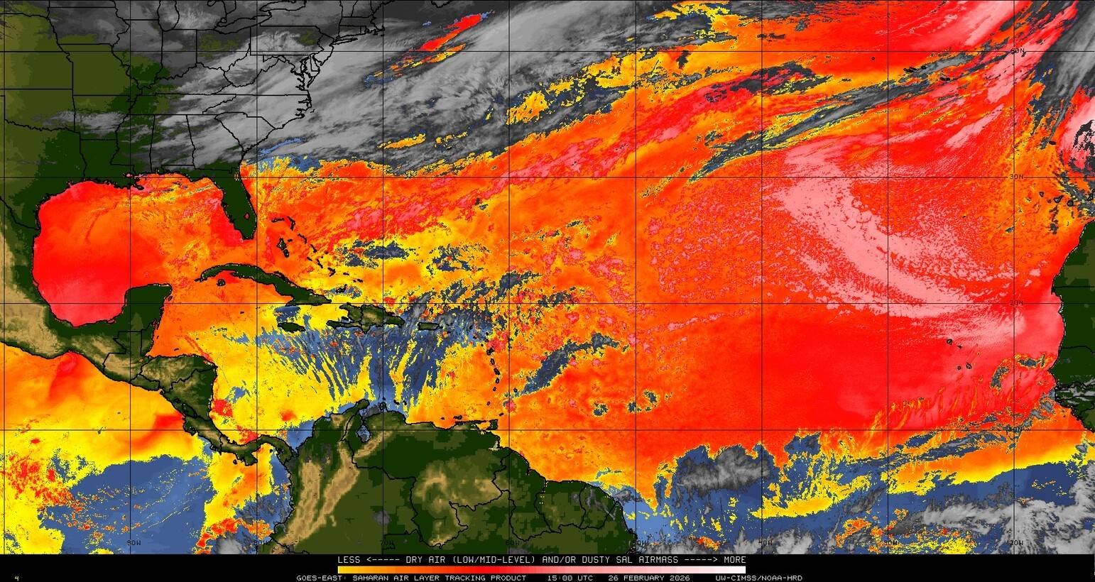 Il n’y a pas de cyclone ni de système surveillé par le NHC en Atlantique. Nous ne sommes pas actuellement en période cyclonique