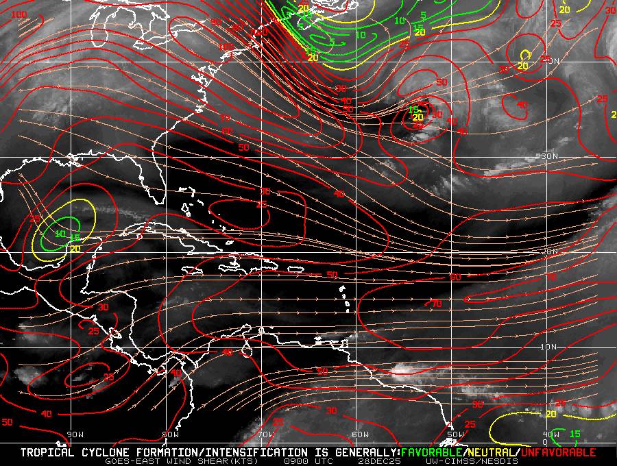 Il n’y a pas de cyclone ni de système surveillé par le NHC en Atlantique. Nous ne sommes pas actuellement en période cyclonique