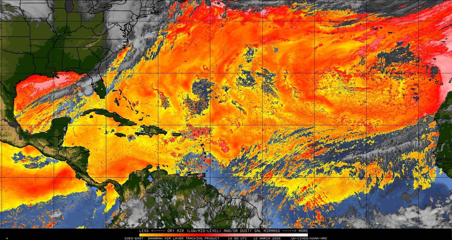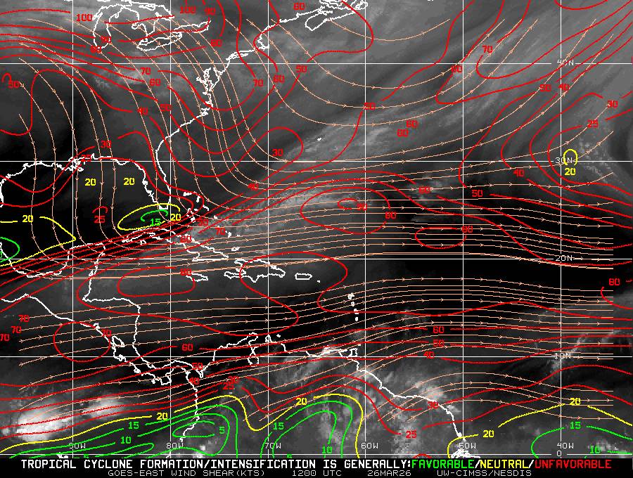 Il n’y a pas de cyclone ni de système surveillé par le NHC en Atlantique. Nous ne sommes pas actuellement en période cyclonique