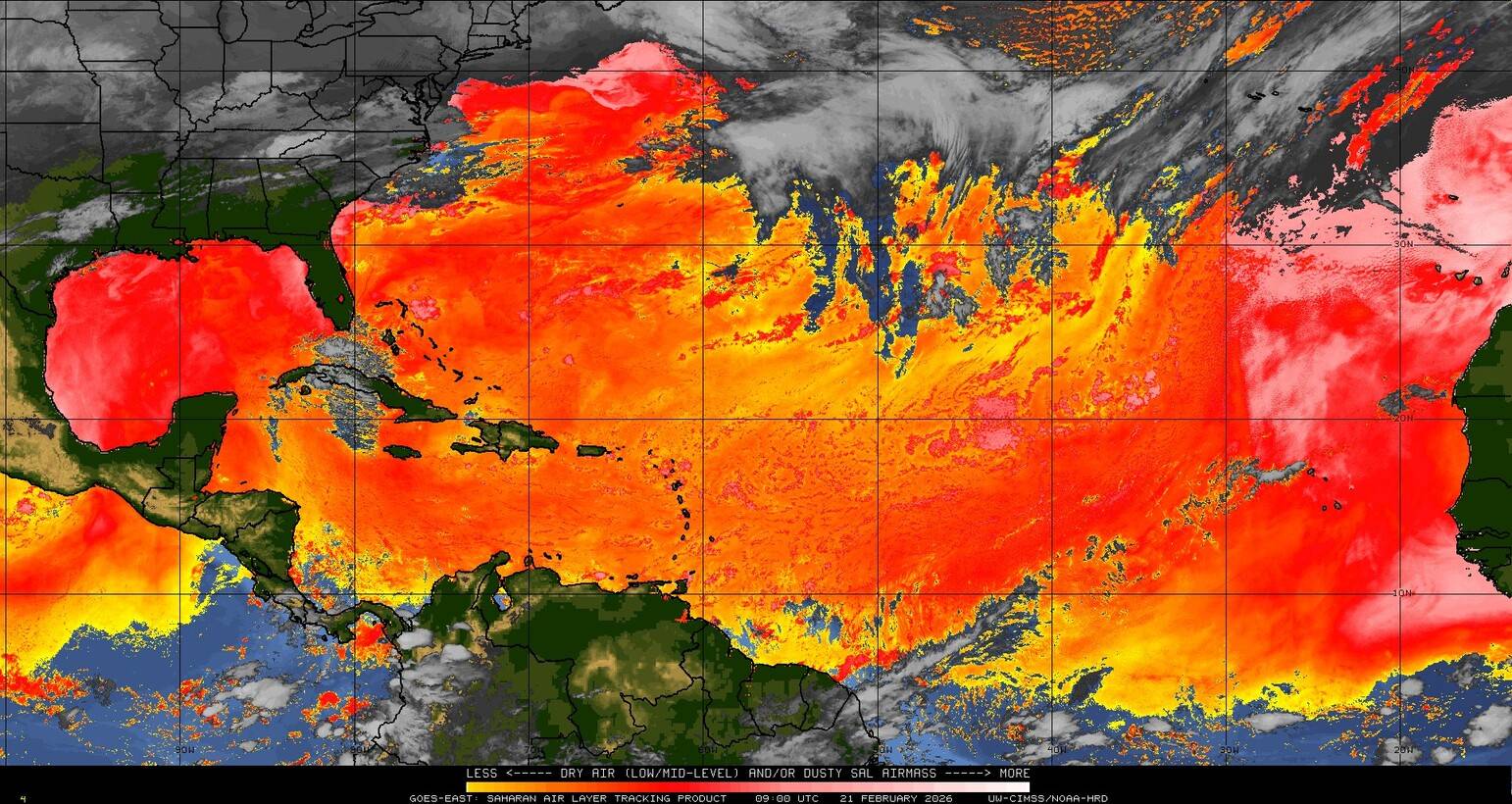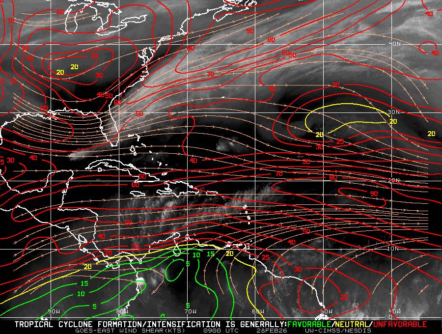 Il n’y a pas de cyclone ni de système surveillé par le NHC en Atlantique. Nous ne sommes pas actuellement en période cyclonique