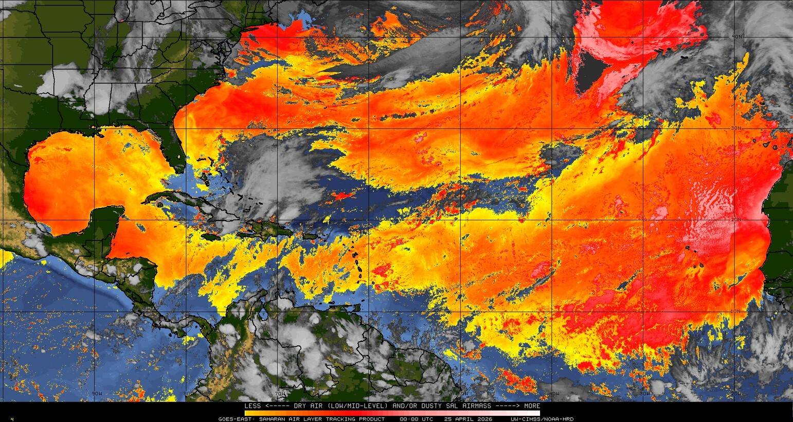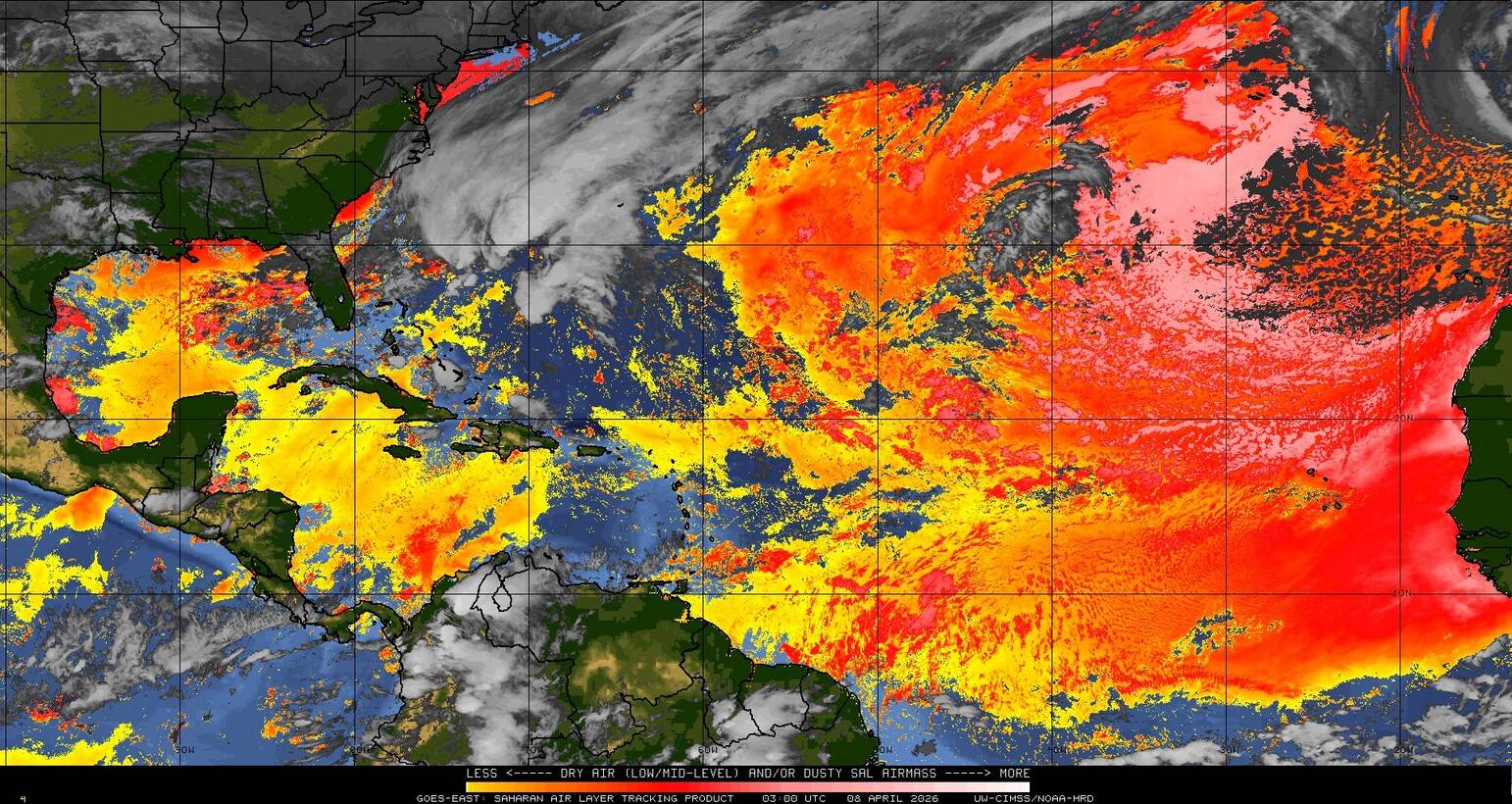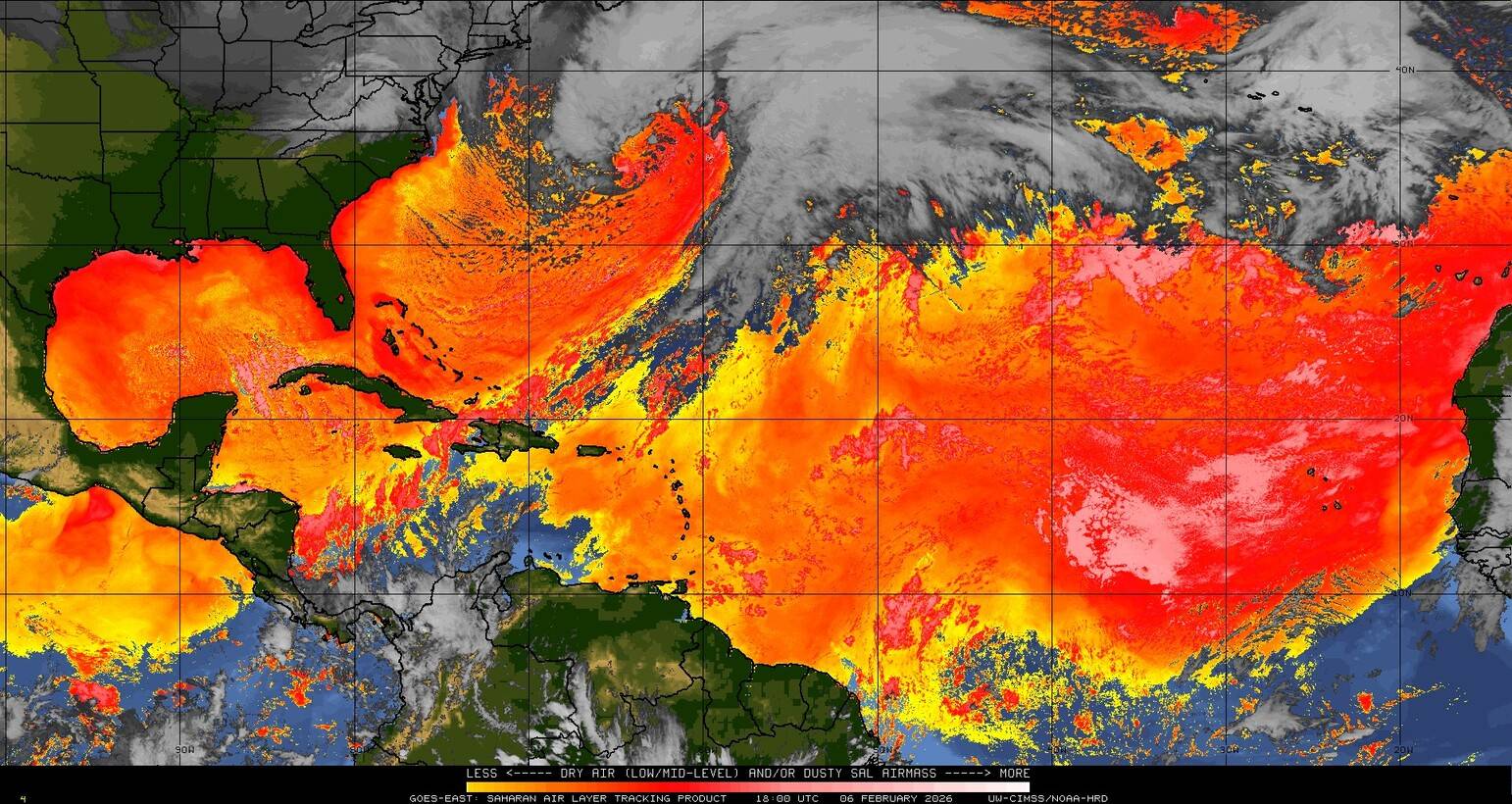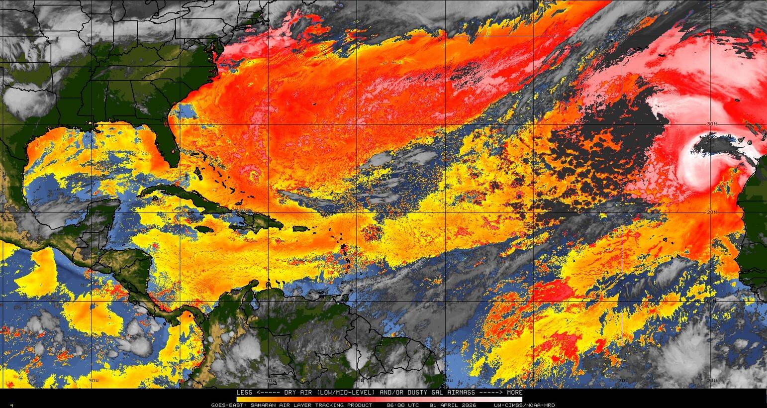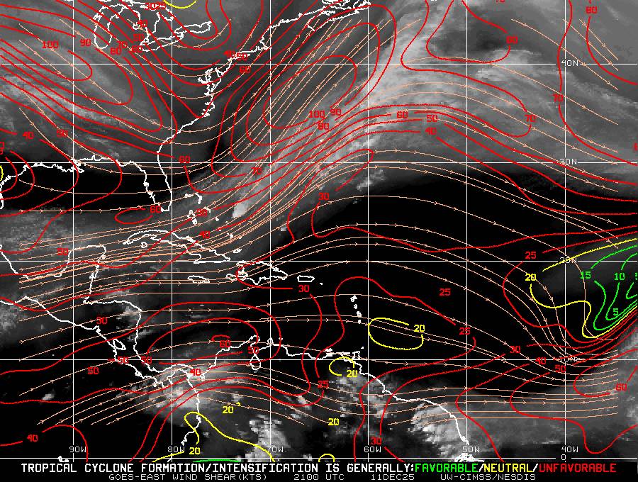 Il n’y a pas de cyclone ni de système surveillé par le NHC en Atlantique. Nous ne sommes pas actuellement en période cyclonique