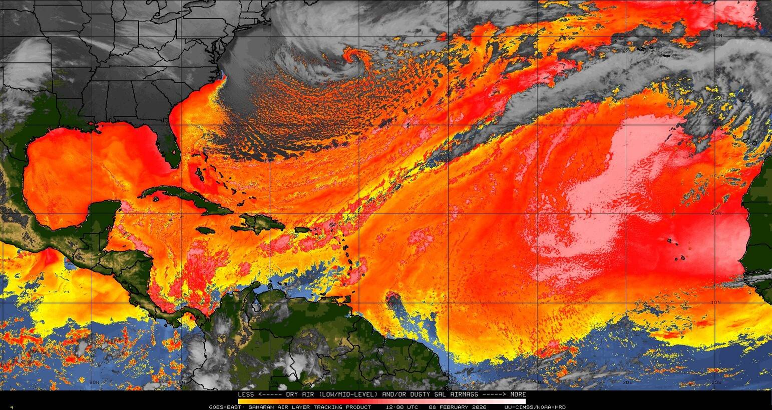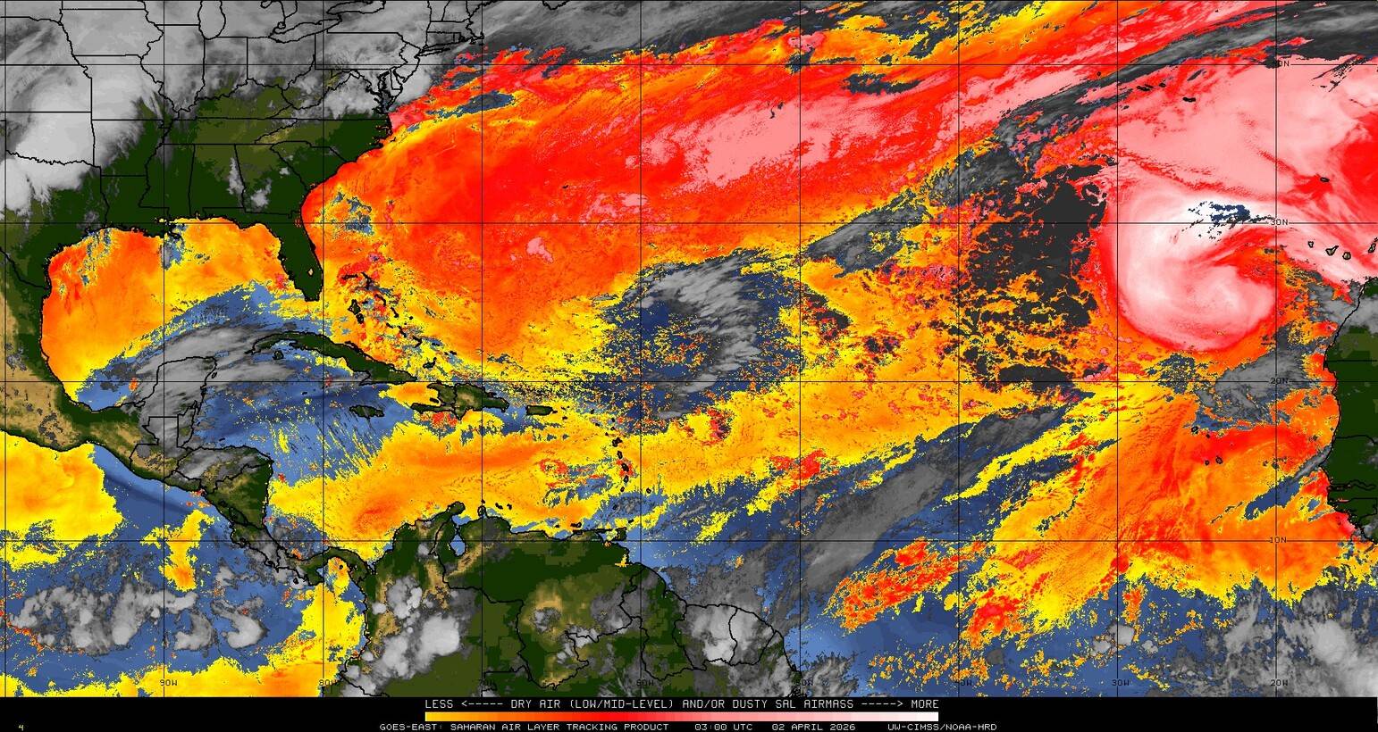 Il n’y a pas de cyclone ni de système surveillé par le NHC en Atlantique. Nous ne sommes pas actuellement en période cyclonique