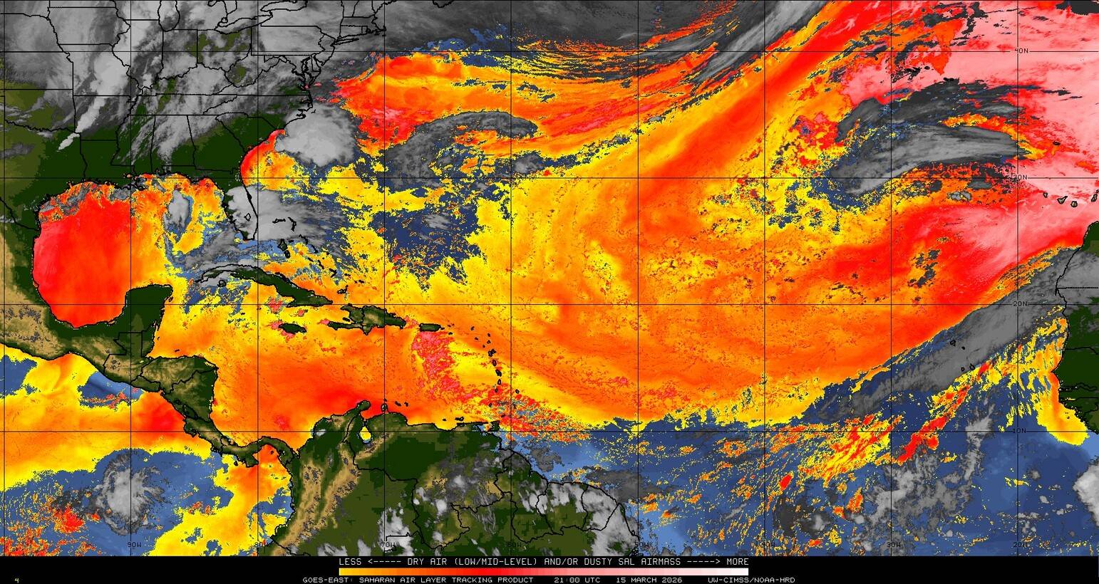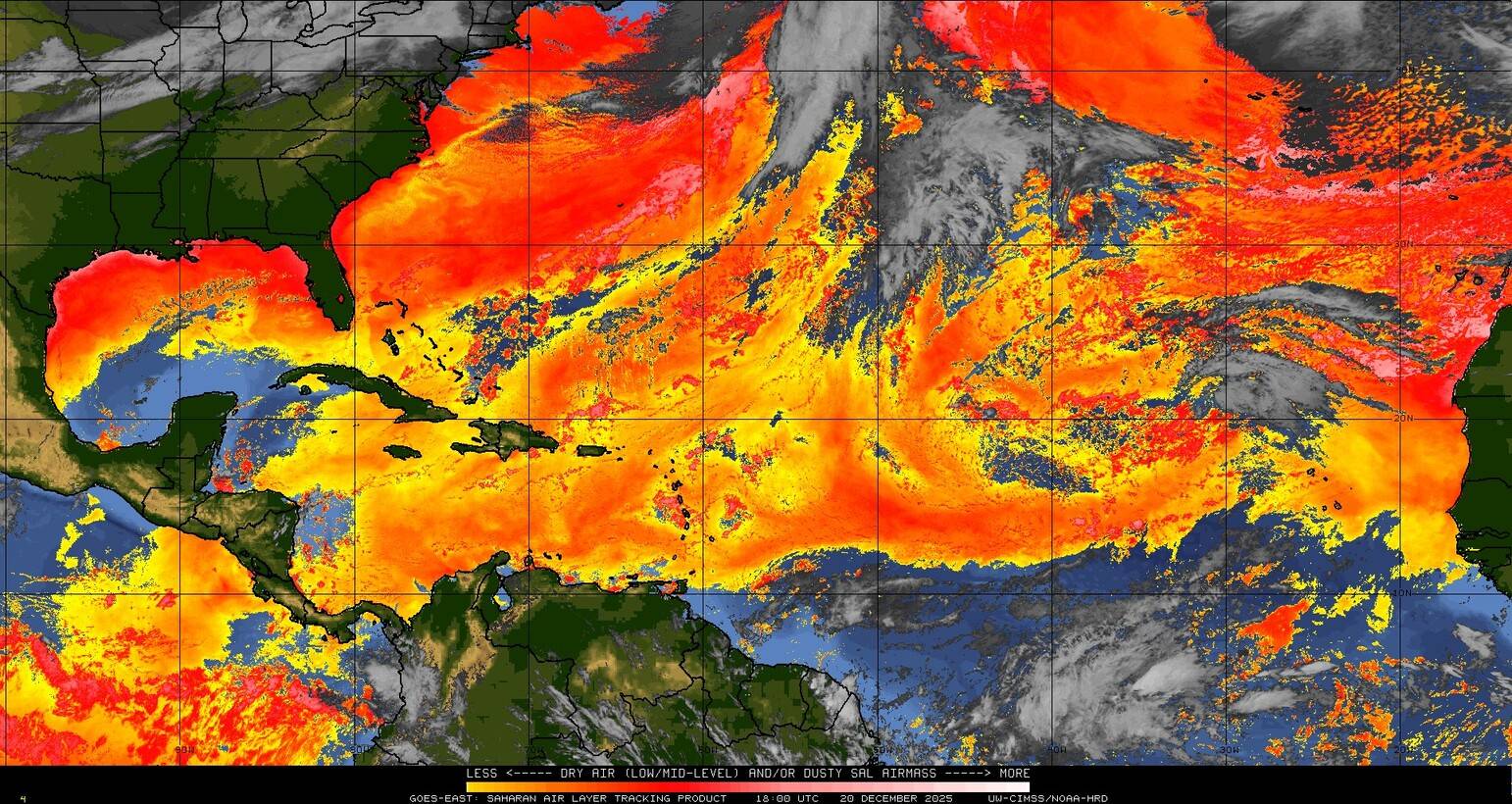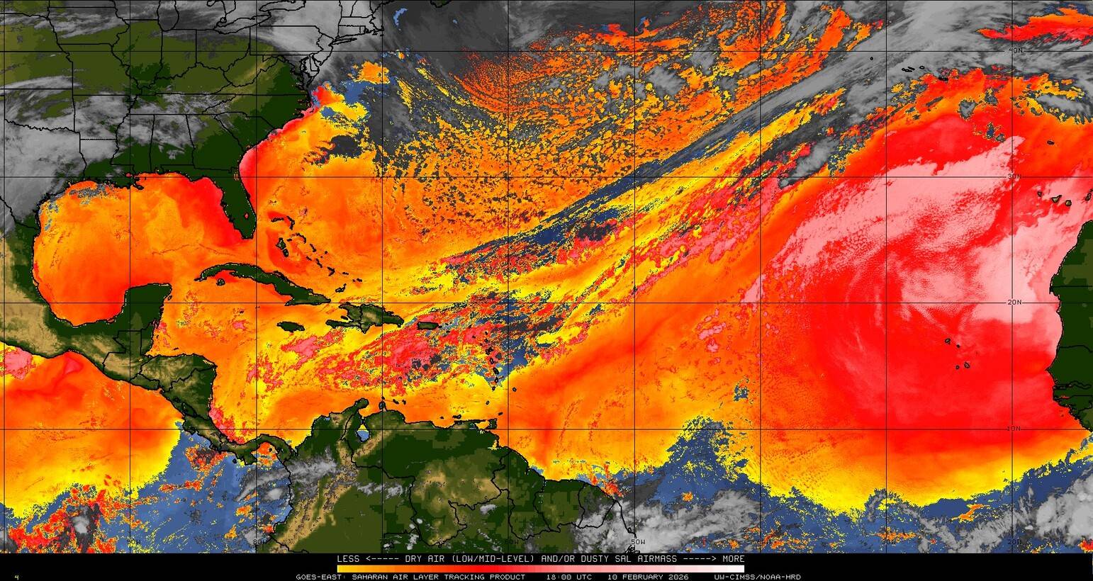 Il n’y a pas de cyclone ni de système surveillé par le NHC en Atlantique. Nous ne sommes pas actuellement en période cyclonique