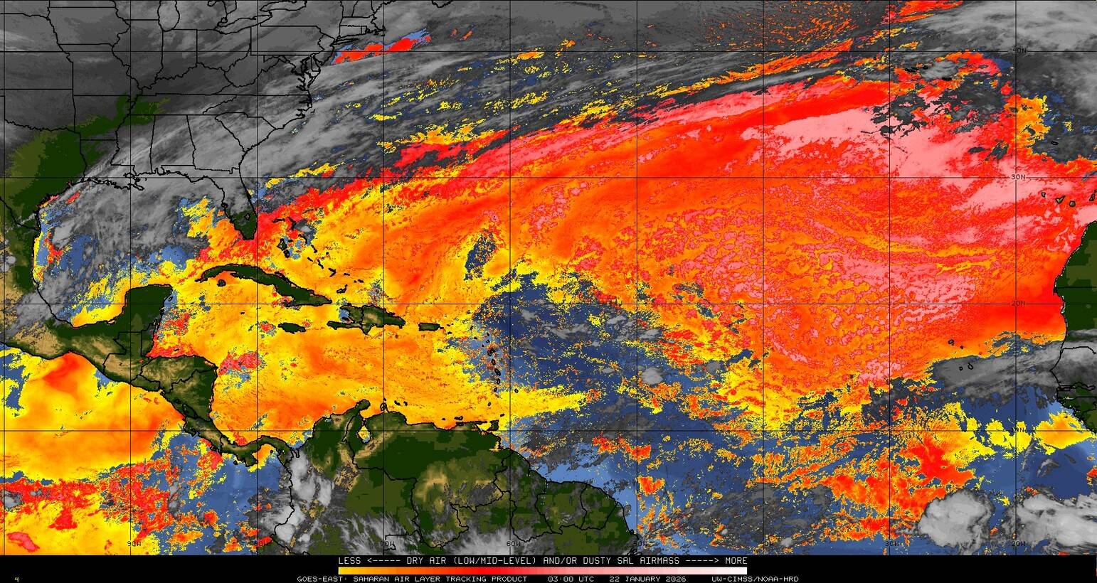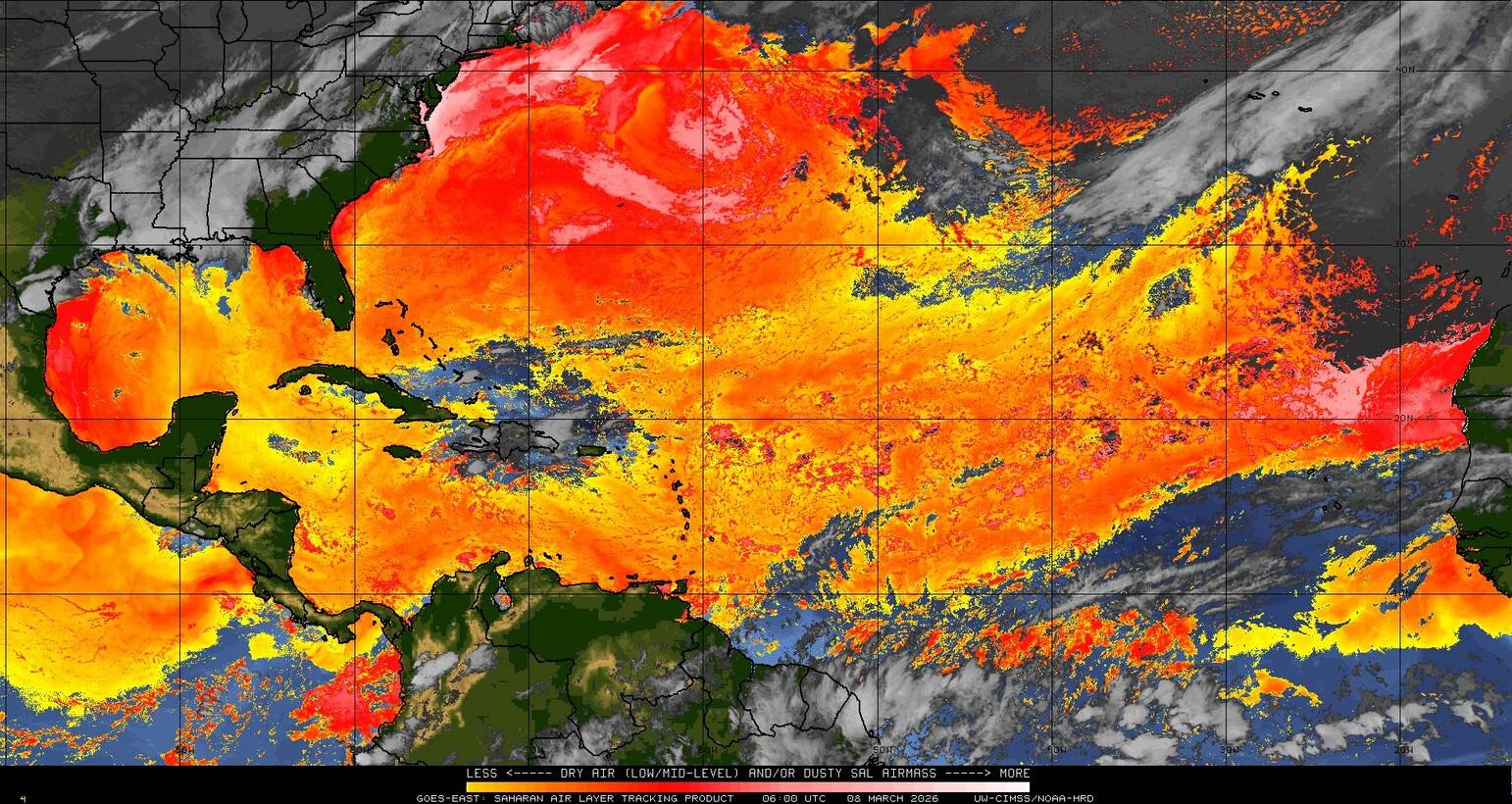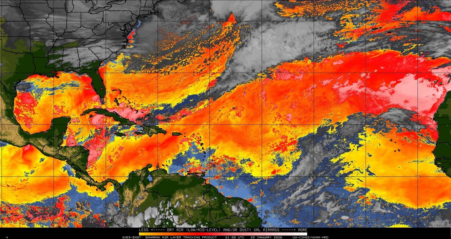 Il n’y a pas de cyclone ni de système surveillé par le NHC en Atlantique. Nous ne sommes pas actuellement en période cyclonique