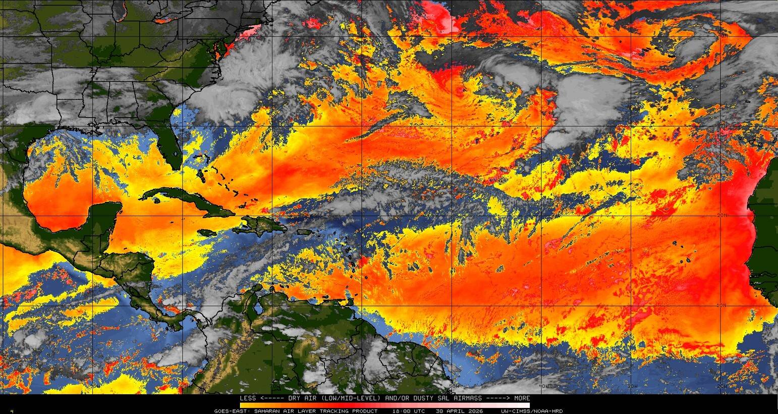 Il n’y a pas de cyclone ni de système surveillé par le NHC en Atlantique. Nous ne sommes pas actuellement en période cyclonique