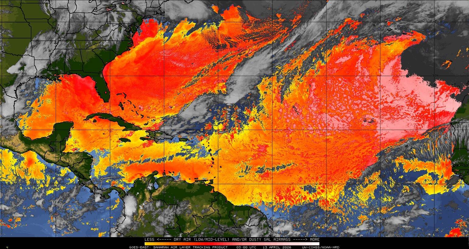 Il n’y a pas de cyclone ni de système surveillé par le NHC en Atlantique. Nous ne sommes pas actuellement en période cyclonique