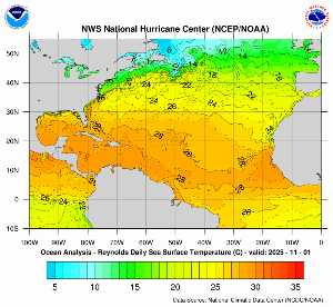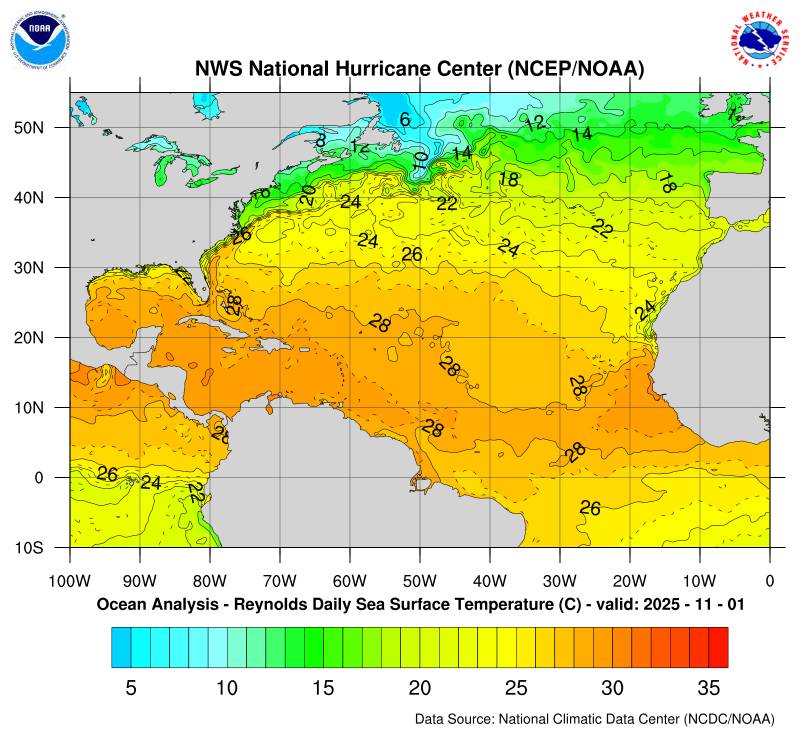 Il n’y a pas de cyclone ni de système surveillé par le NHC en Atlantique.