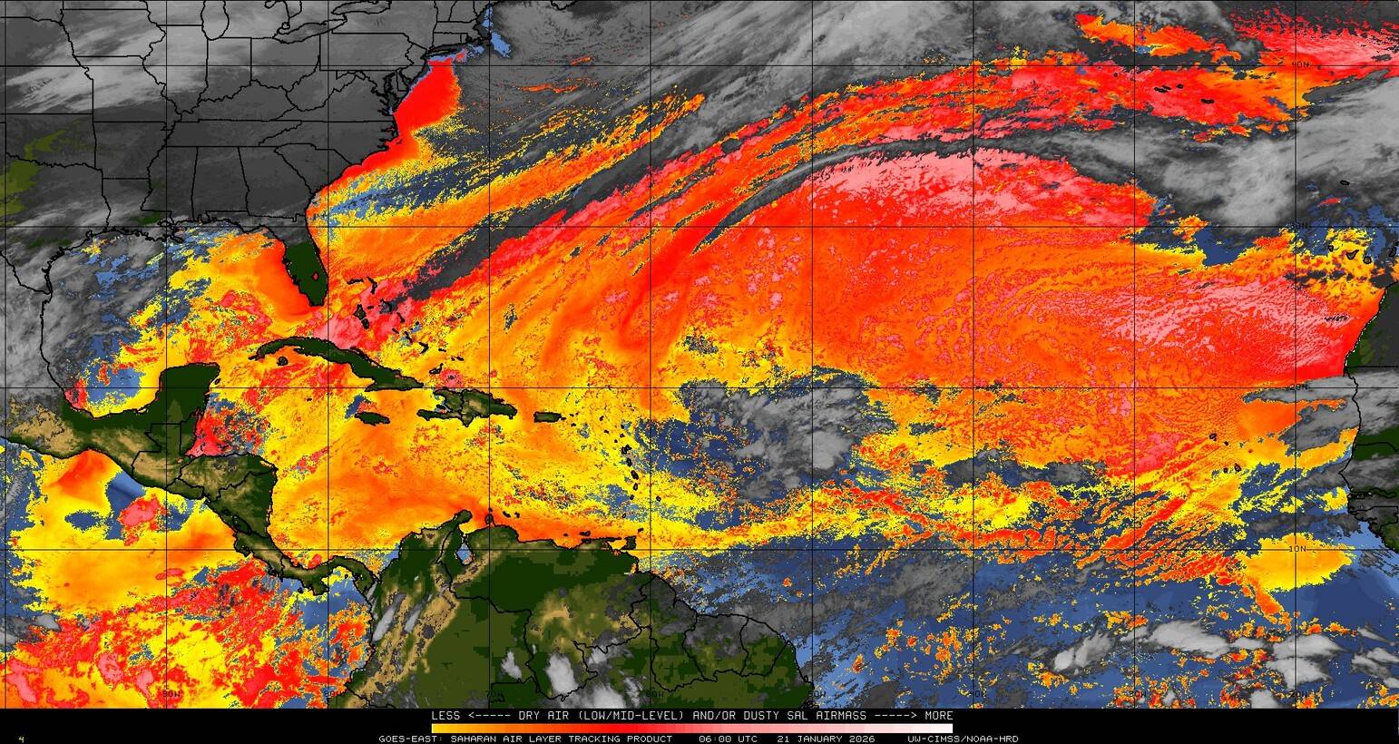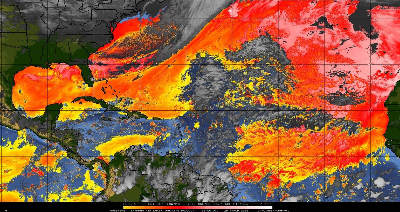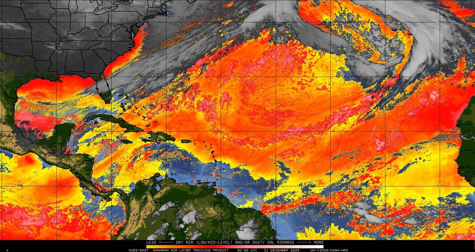 Il n’y a pas de cyclone ni de système surveillé par le NHC en Atlantique. Nous ne sommes pas actuellement en période cyclonique