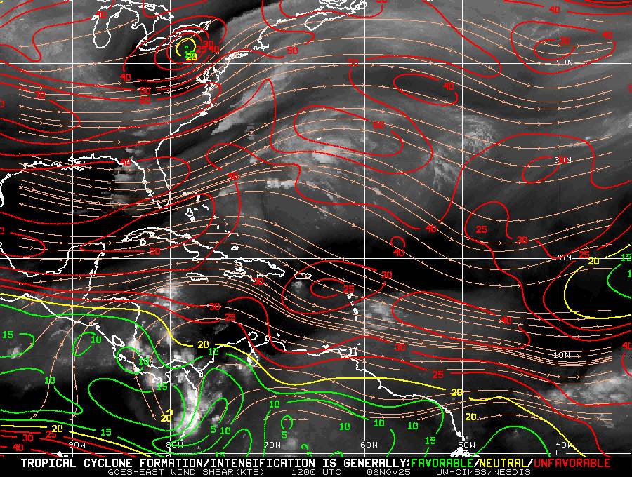 Il n’y a pas de cyclone ni de système surveillé par le NHC en Atlantique.