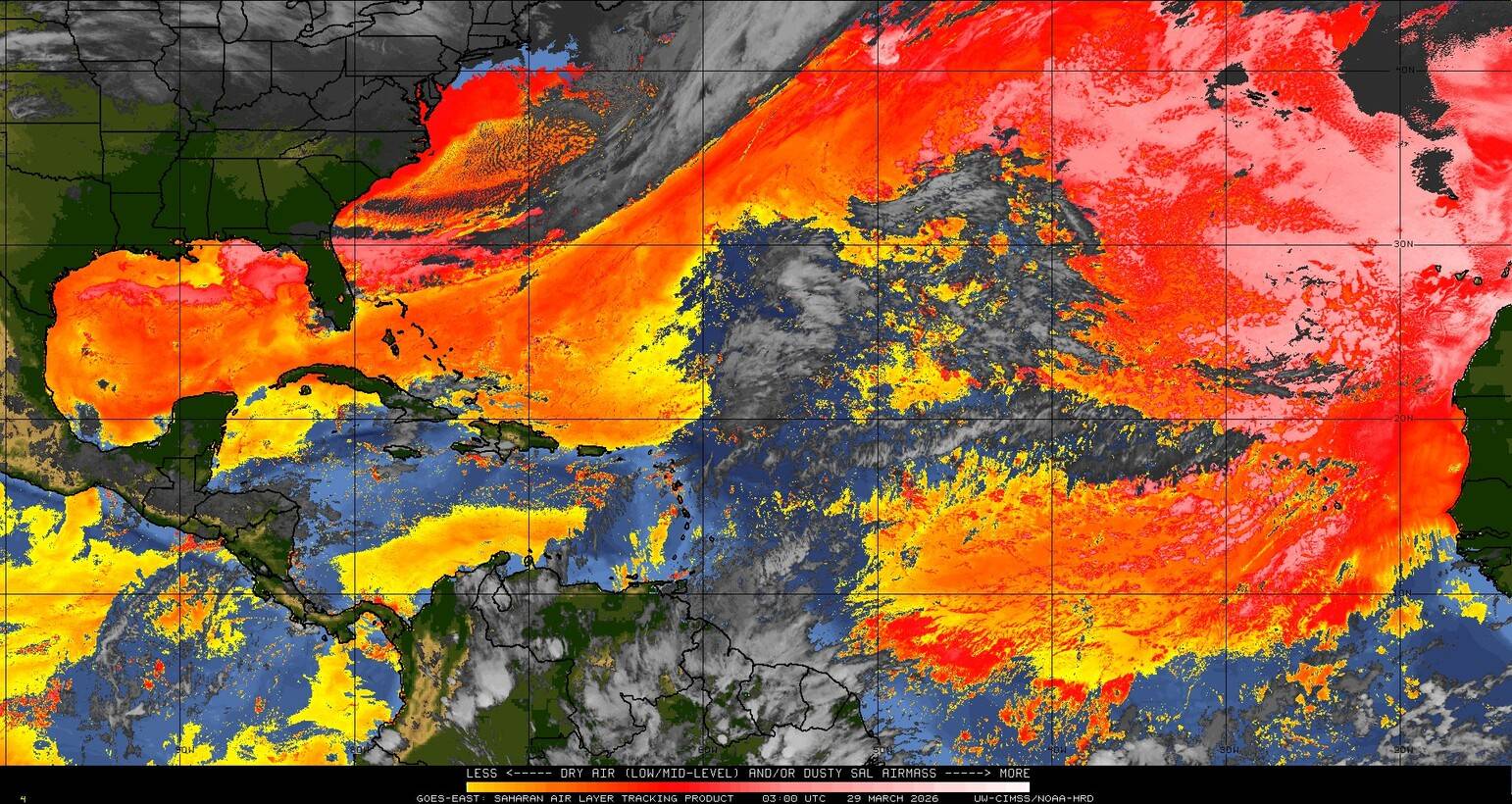 Il n’y a pas de cyclone ni de système surveillé par le NHC en Atlantique. Nous ne sommes pas actuellement en période cyclonique