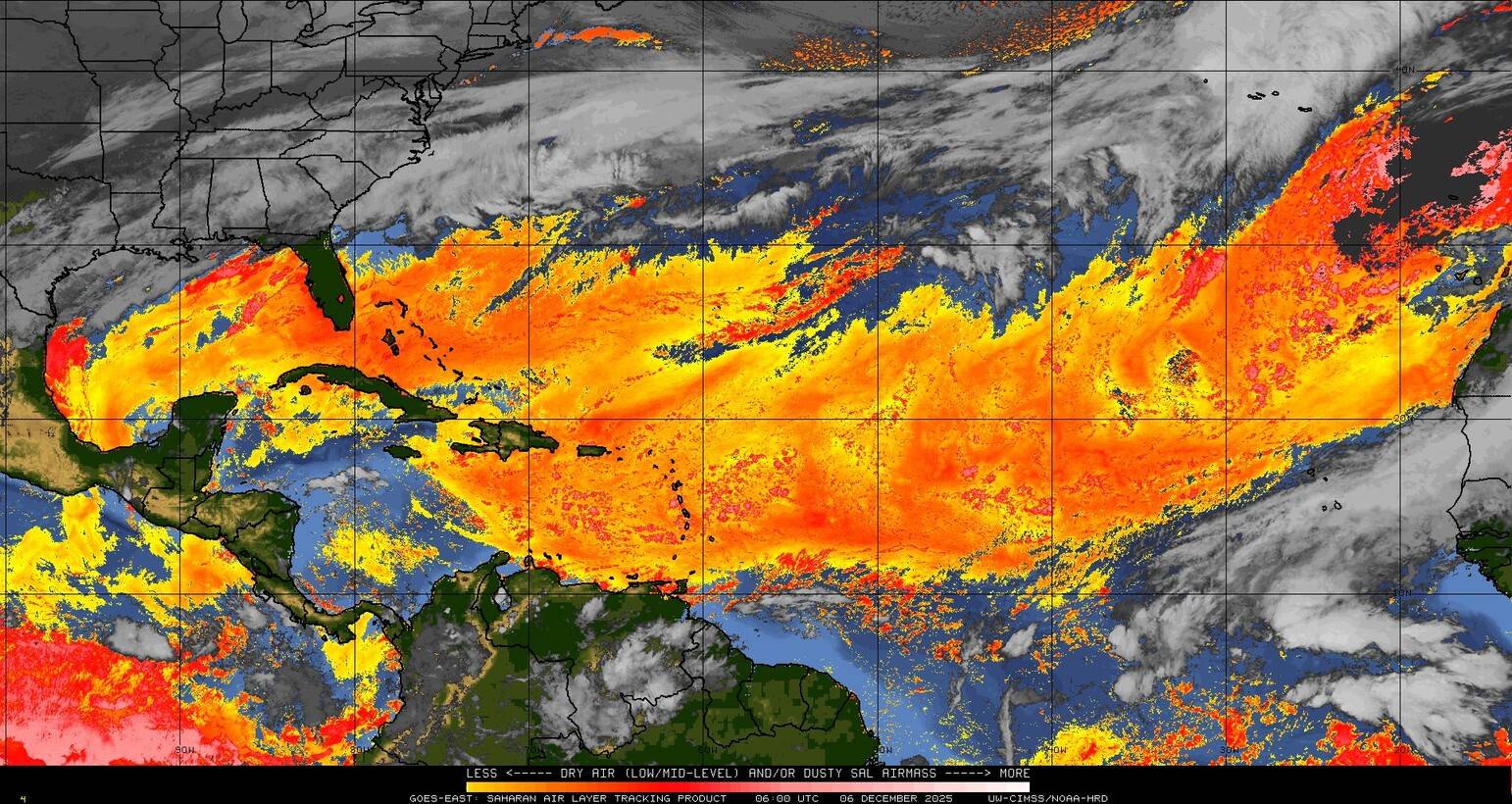 Il n’y a pas de cyclone ni de système surveillé par le NHC en Atlantique. Nous ne sommes pas actuellement en période cyclonique