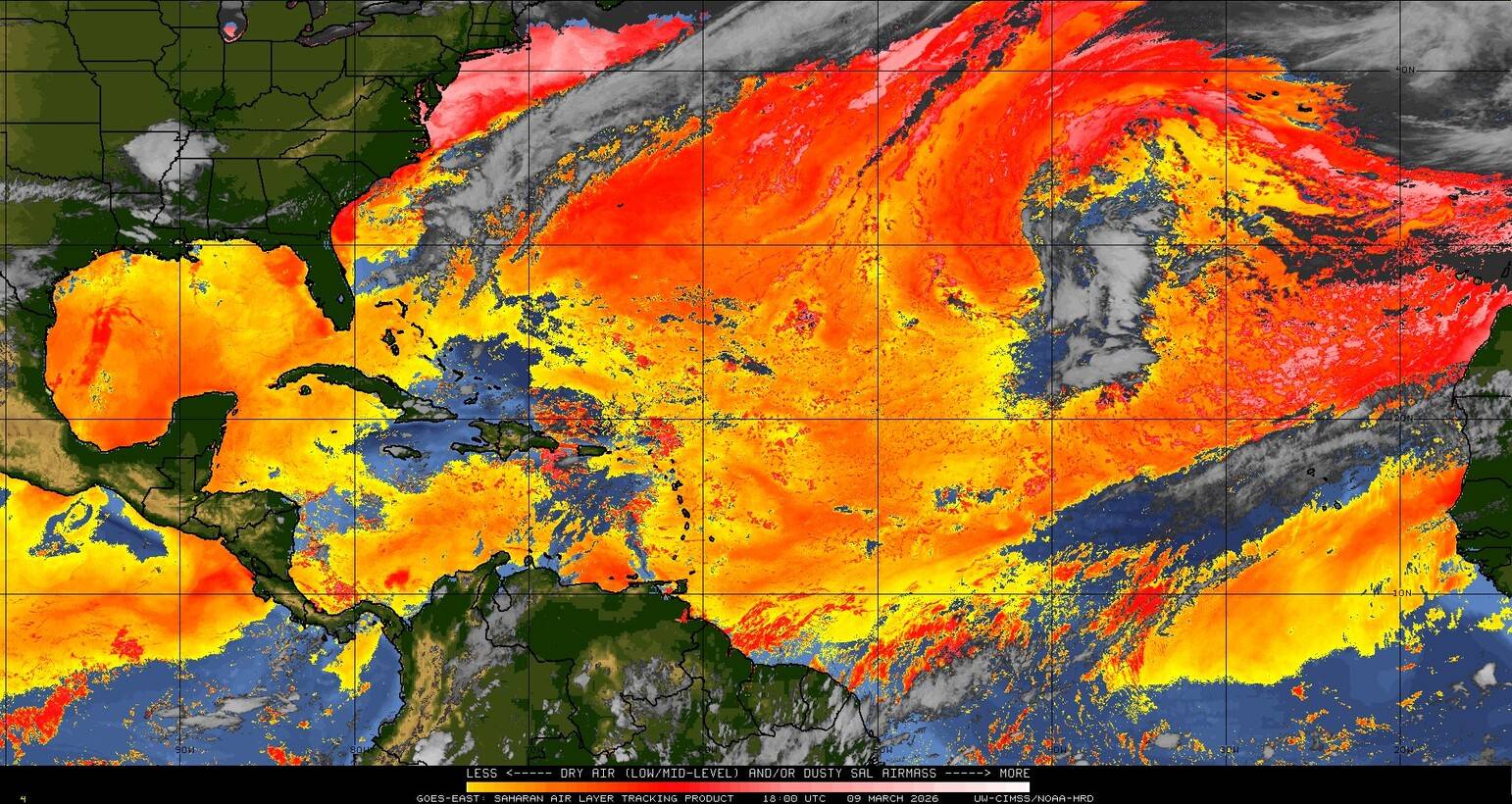 Il n’y a pas de cyclone ni de système surveillé par le NHC en Atlantique. Nous ne sommes pas actuellement en période cyclonique