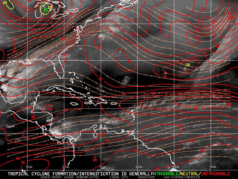 Il n’y a pas de cyclone ni de système surveillé par le NHC en Atlantique.