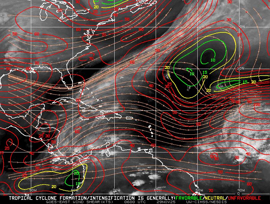 Il n’y a pas de cyclone ni de système surveillé par le NHC en Atlantique.