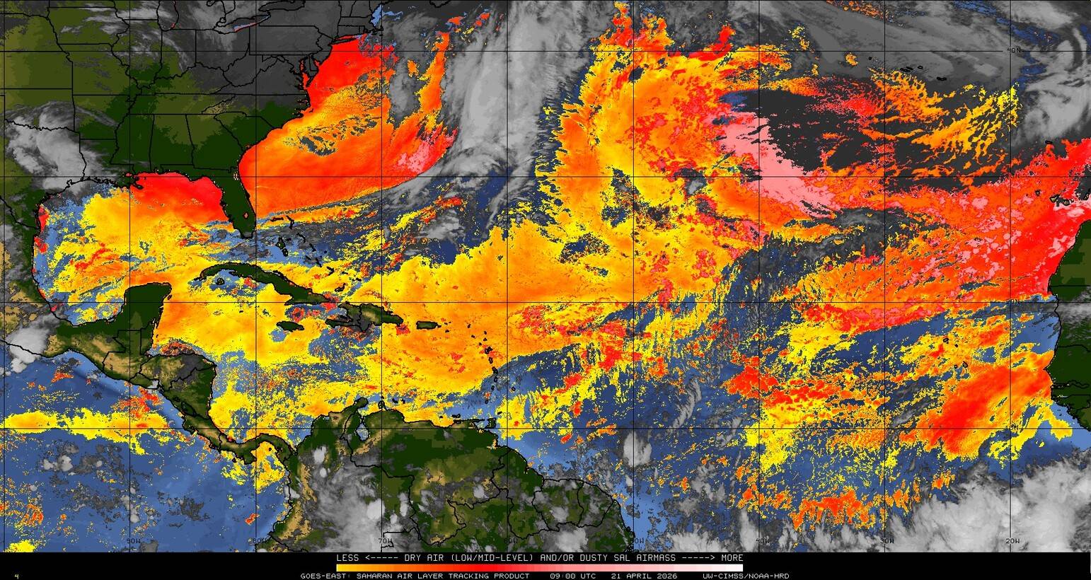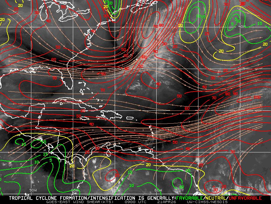 Il n’y a pas de cyclone ni de système surveillé par le NHC en Atlantique. Nous ne sommes pas actuellement en période cyclonique