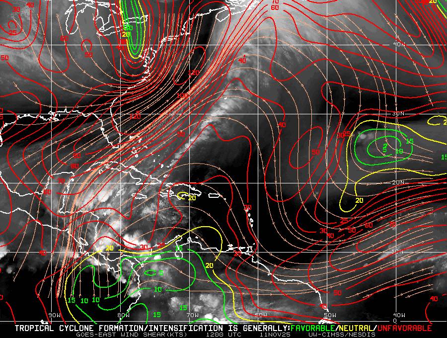 Il n’y a pas de cyclone ni de système surveillé par le NHC en Atlantique.