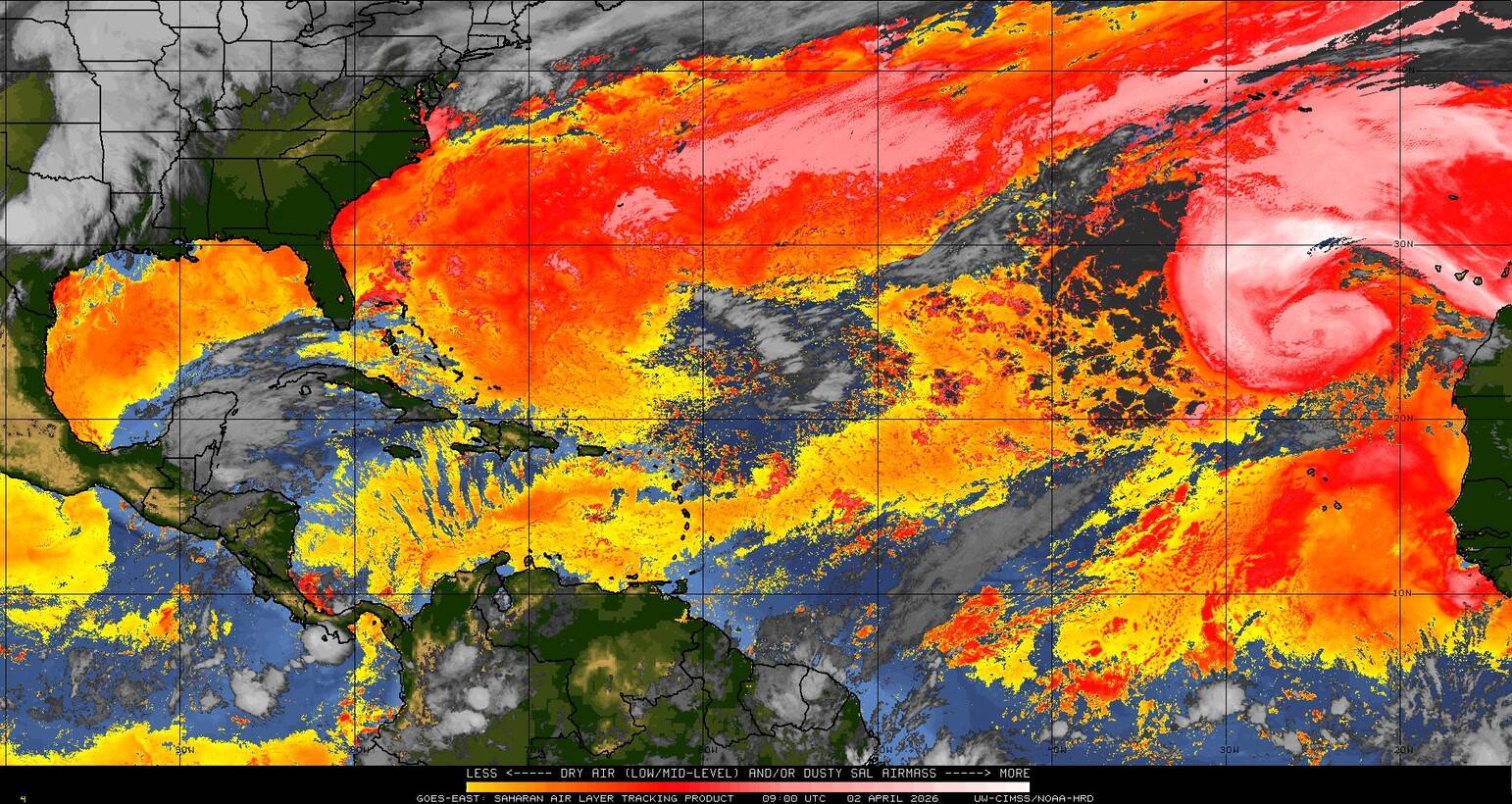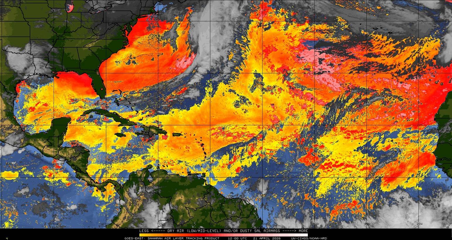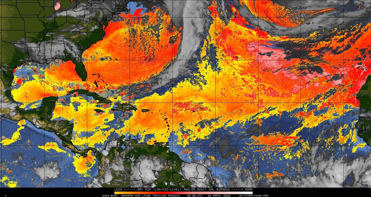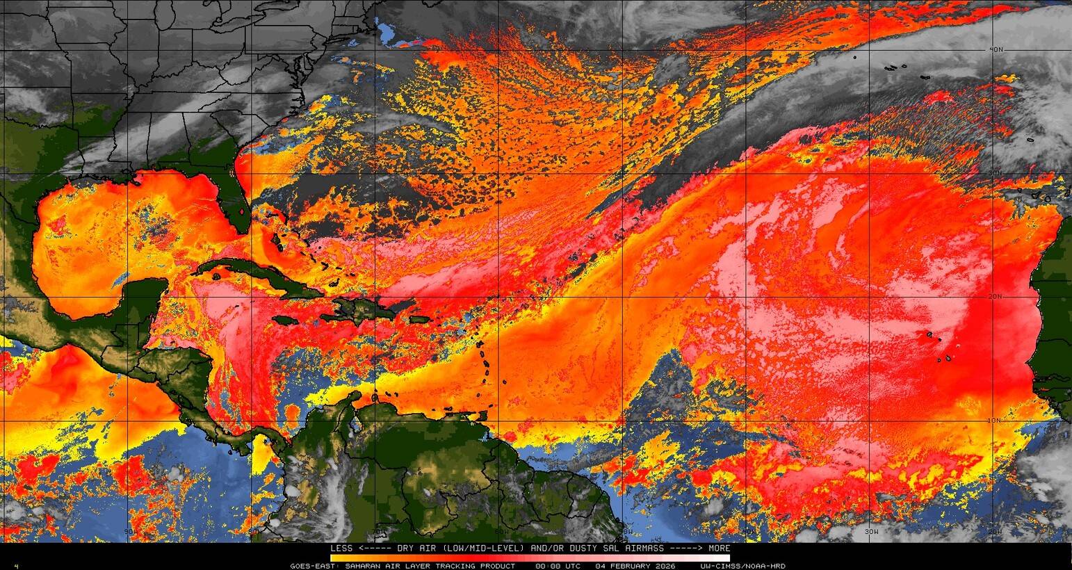 Il n’y a pas de cyclone ni de système surveillé par le NHC en Atlantique. Nous ne sommes pas actuellement en période cyclonique