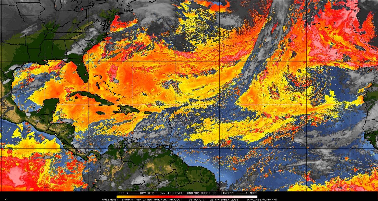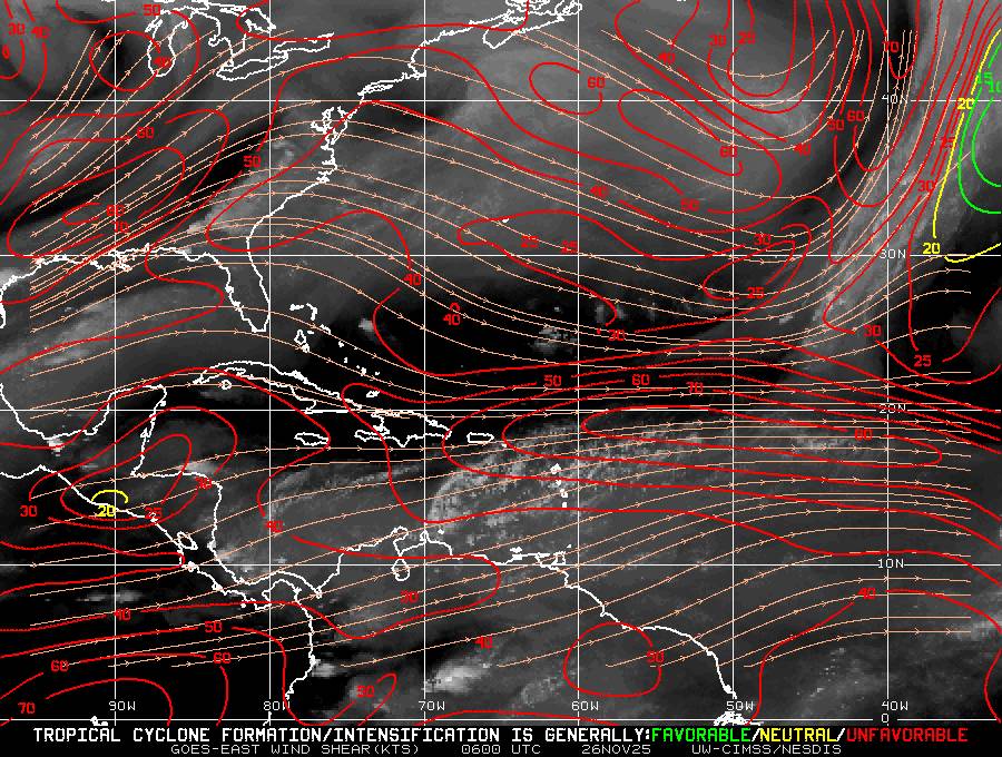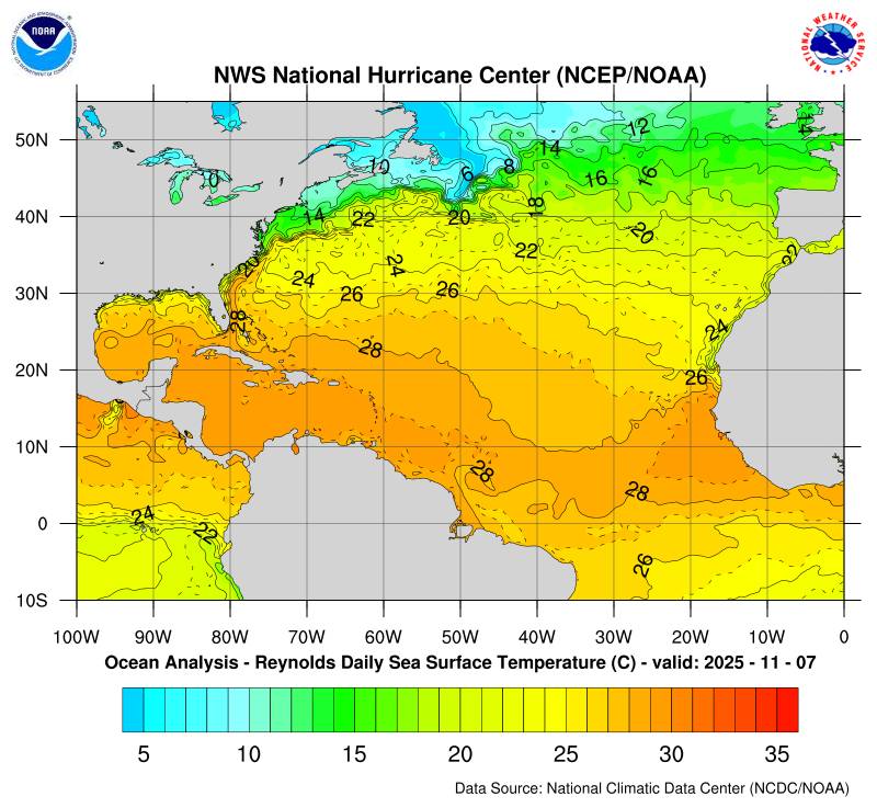 Il n’y a pas de cyclone ni de système surveillé par le NHC en Atlantique.