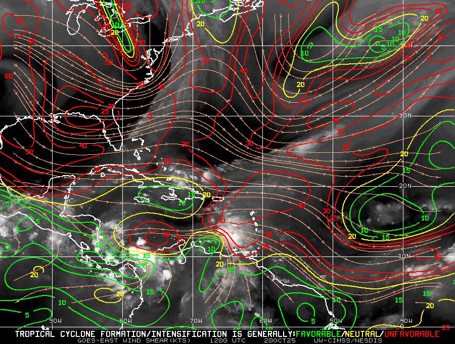 L’ INVEST 98L (1) situé(e) sur 12.7 N par -65.1 W (à 313 km au NE de Venezuela). L’intensité est de 30 kts et la pression de 1009 hPa. Le risque de renforcement est de 30% à 48H et de 70% à 7 jours.