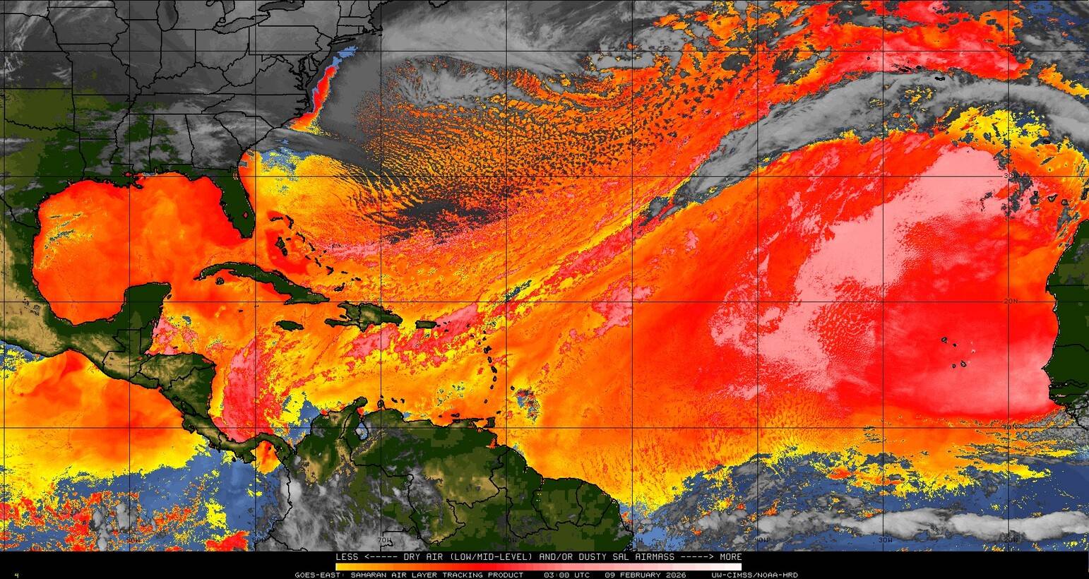 Il n’y a pas de cyclone ni de système surveillé par le NHC en Atlantique. Nous ne sommes pas actuellement en période cyclonique
