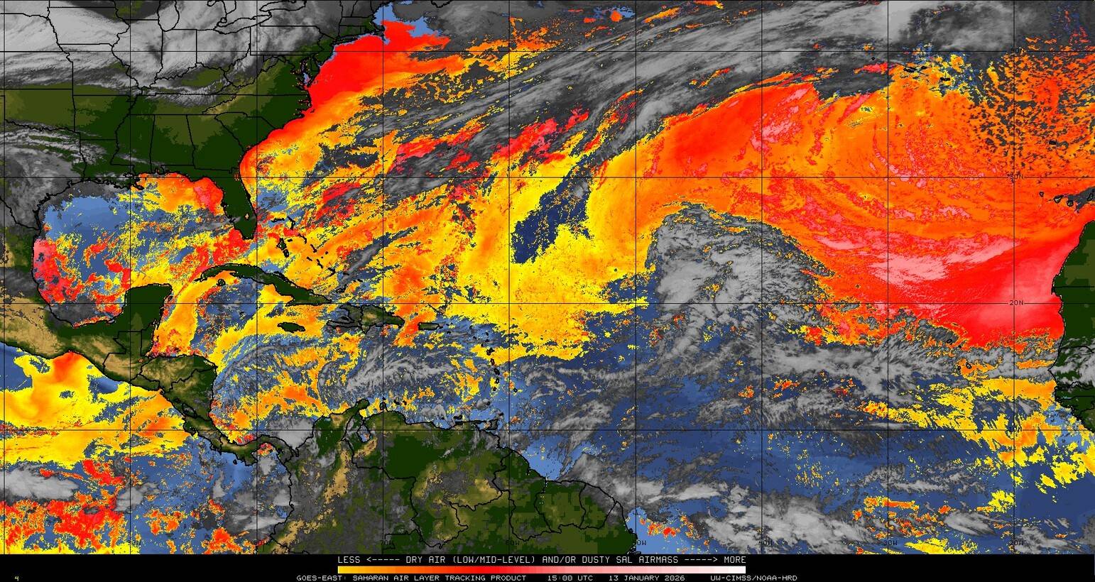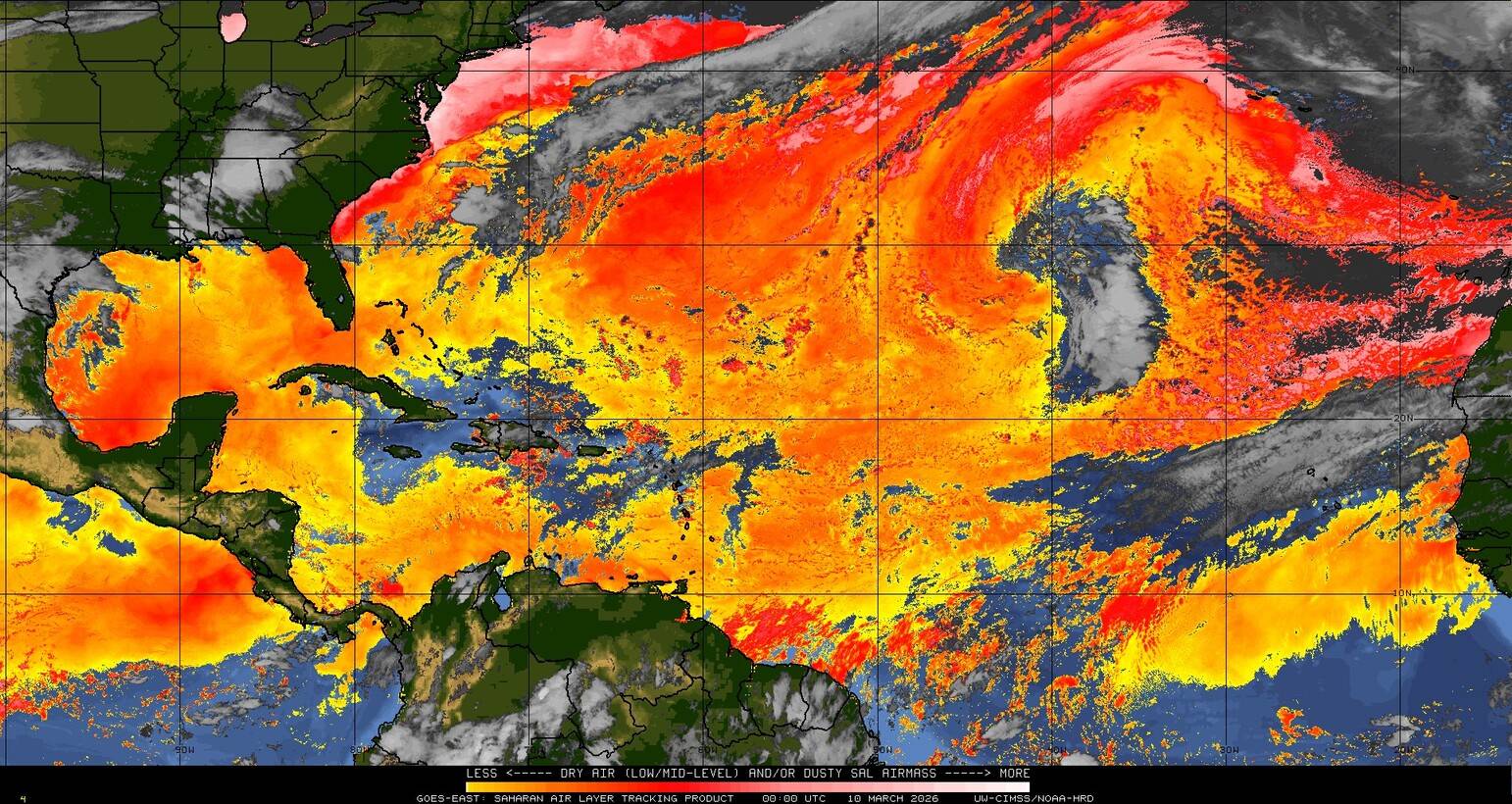 Il n’y a pas de cyclone ni de système surveillé par le NHC en Atlantique. Nous ne sommes pas actuellement en période cyclonique