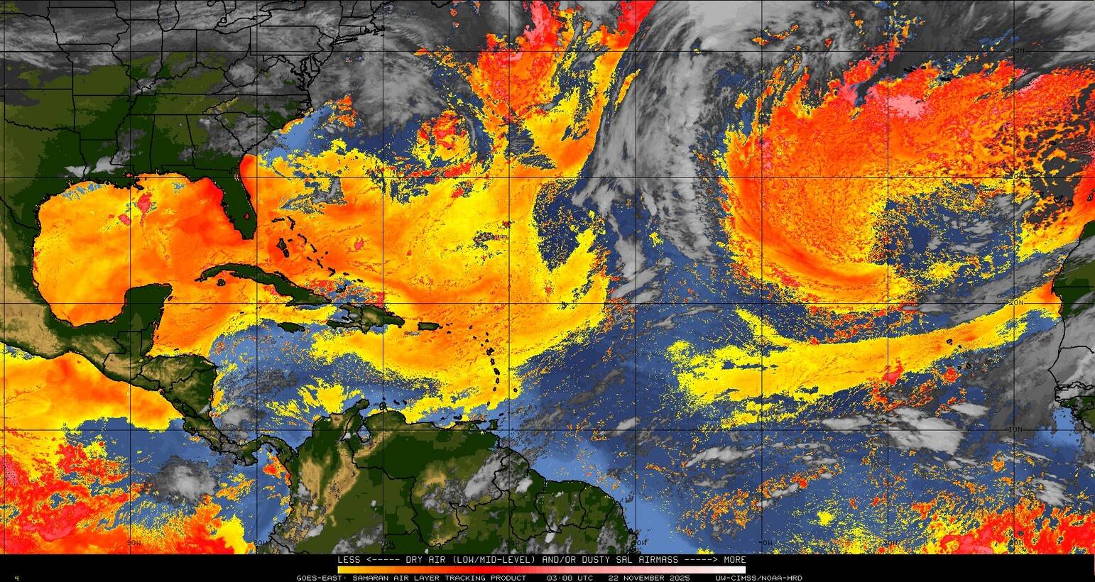 Il n’y a pas de cyclone ni de système surveillé par le NHC en Atlantique.
