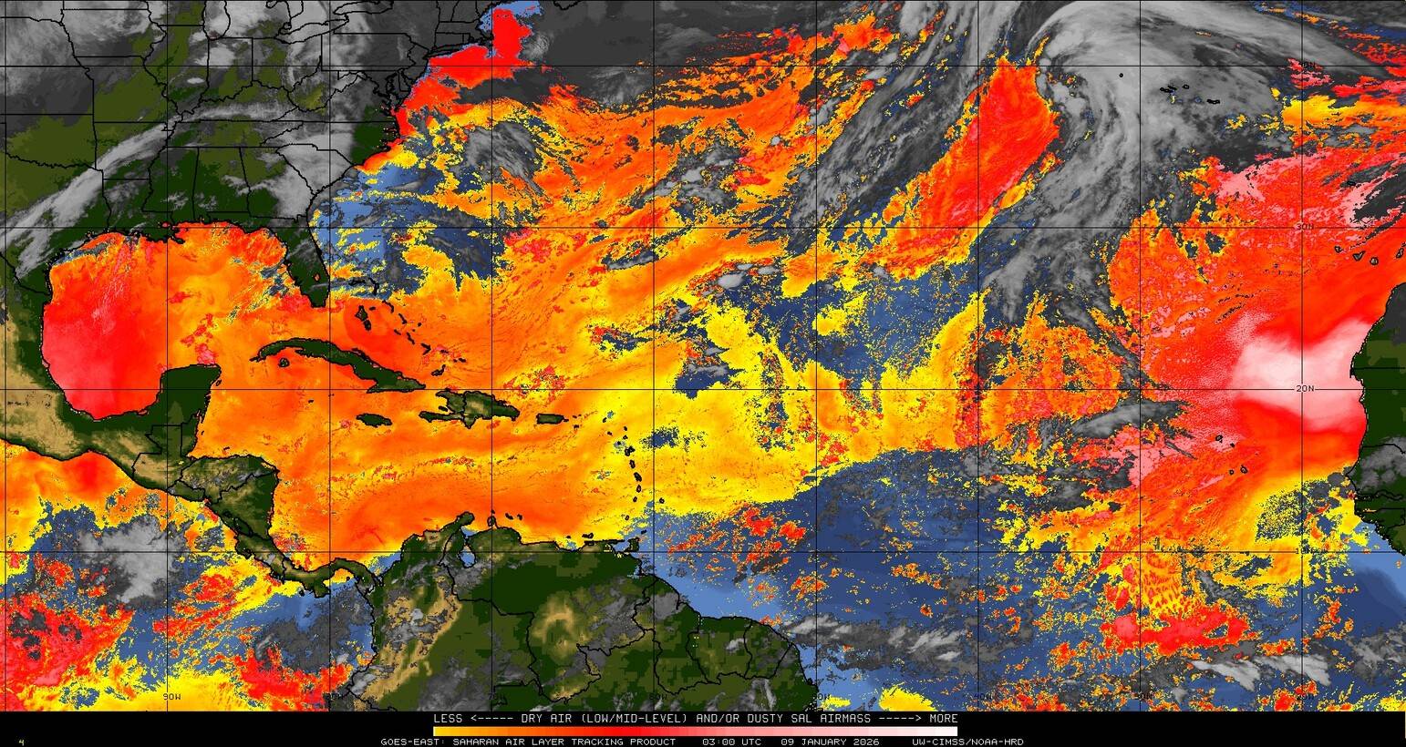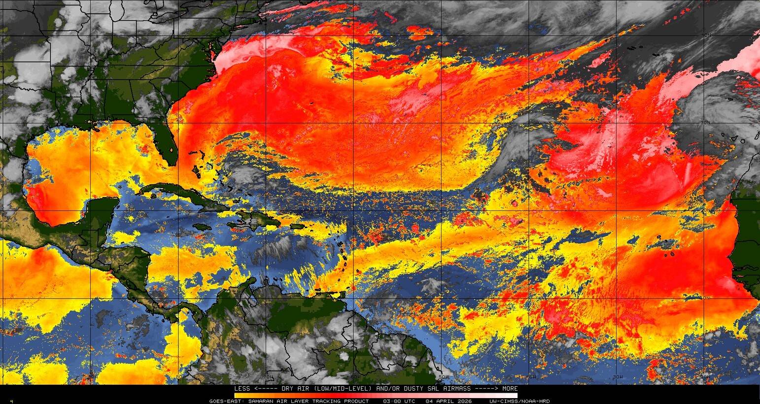 Il n’y a pas de cyclone ni de système surveillé par le NHC en Atlantique. Nous ne sommes pas actuellement en période cyclonique