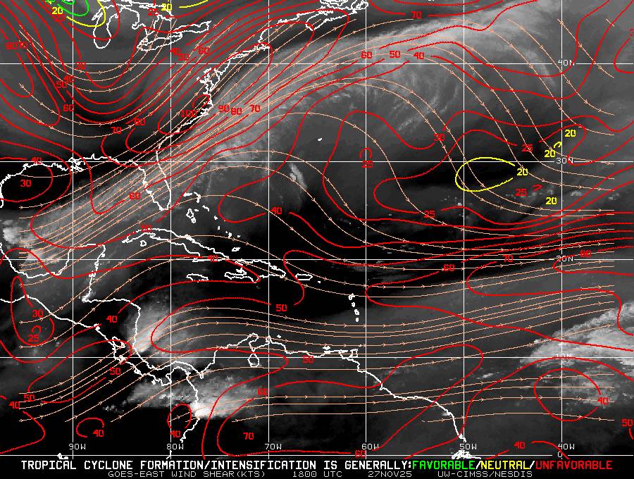 Il n’y a pas de cyclone ni de système surveillé par le NHC en Atlantique.