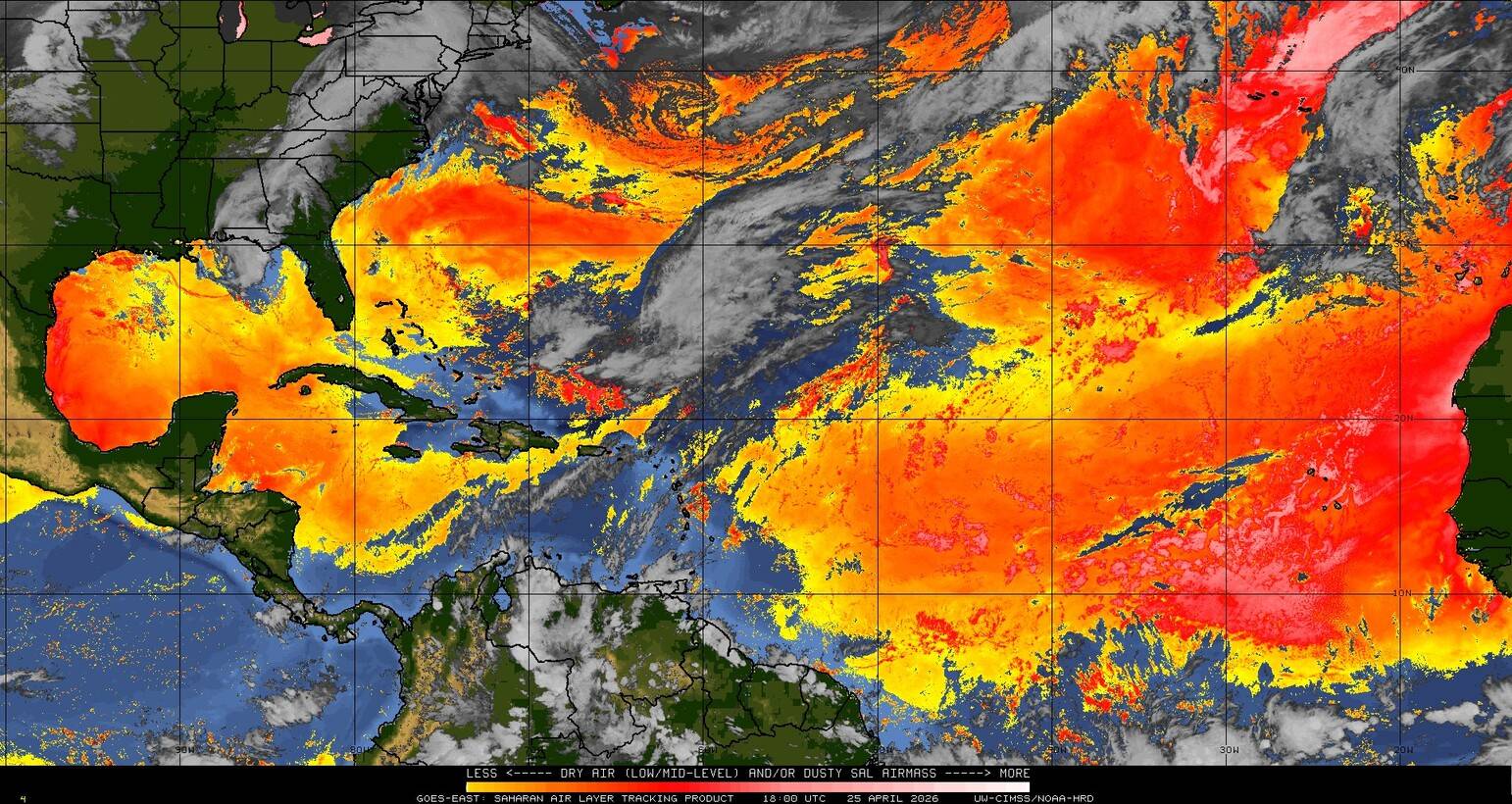 Il n’y a pas de cyclone ni de système surveillé par le NHC en Atlantique. Nous ne sommes pas actuellement en période cyclonique