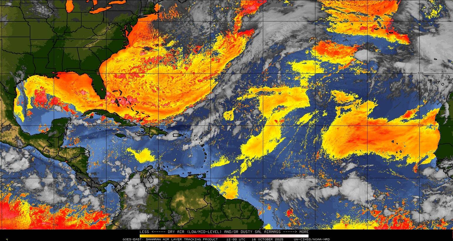 Il n’y a pas de cyclone ni de système surveillé par le NHC en Atlantique.