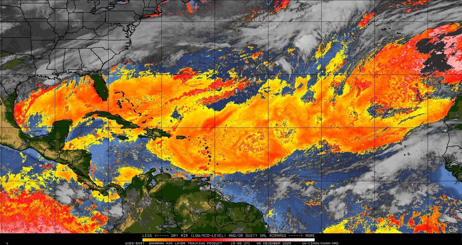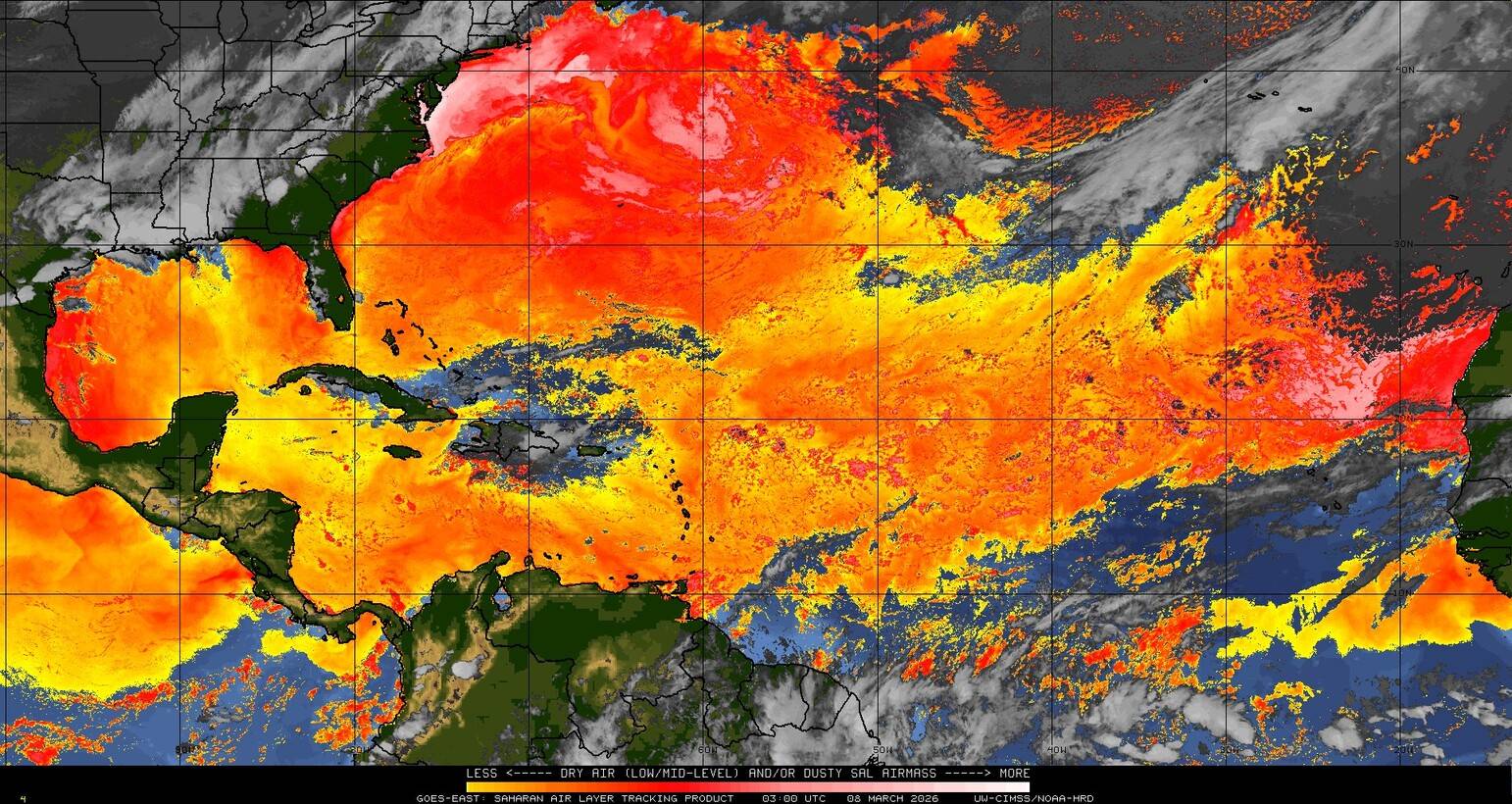 Il n’y a pas de cyclone ni de système surveillé par le NHC en Atlantique. Nous ne sommes pas actuellement en période cyclonique