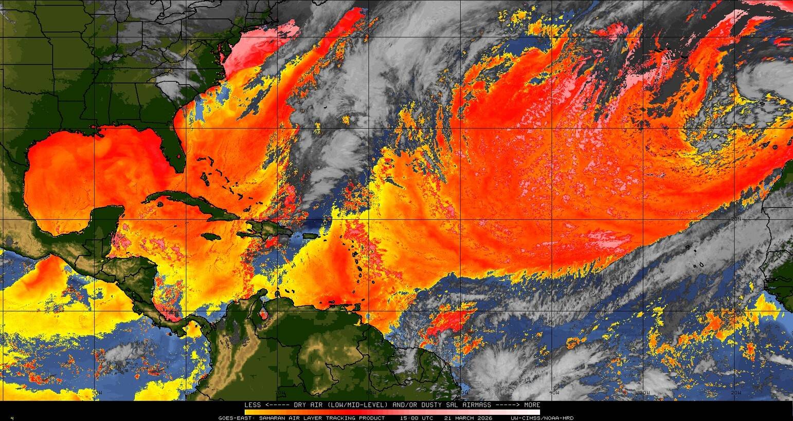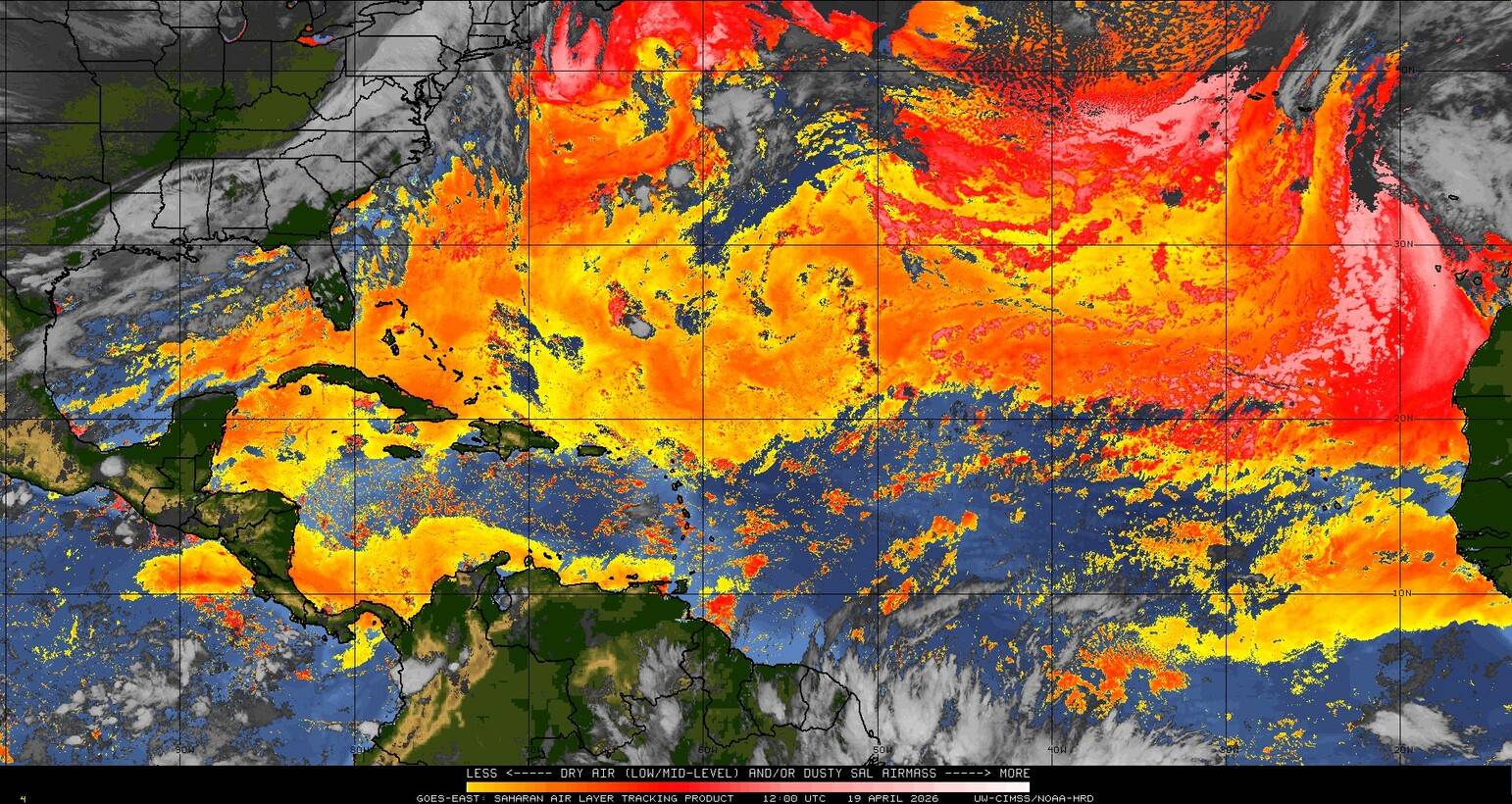 Il n’y a pas de cyclone ni de système surveillé par le NHC en Atlantique. Nous ne sommes pas actuellement en période cyclonique