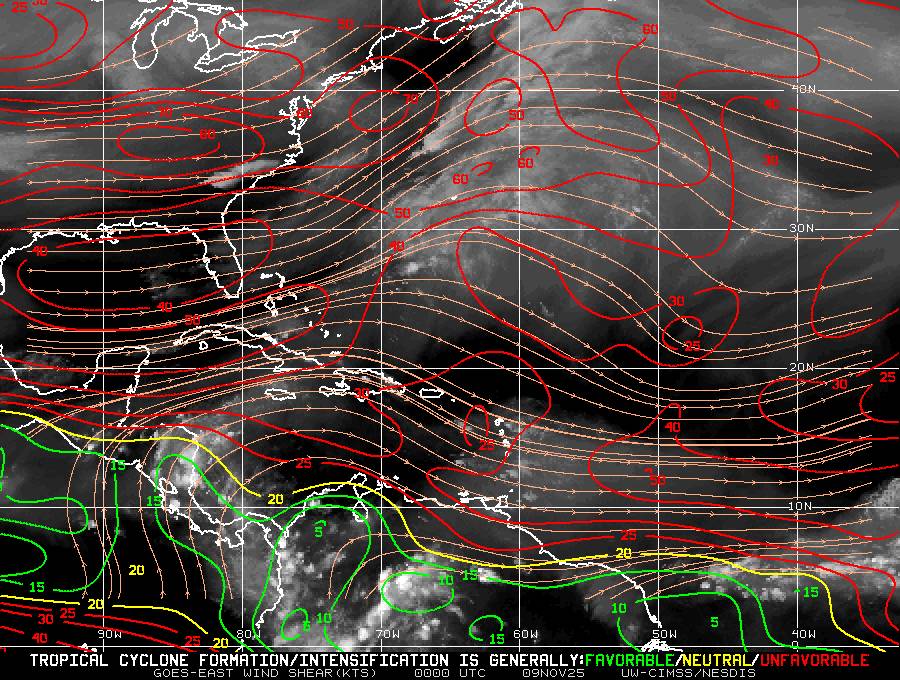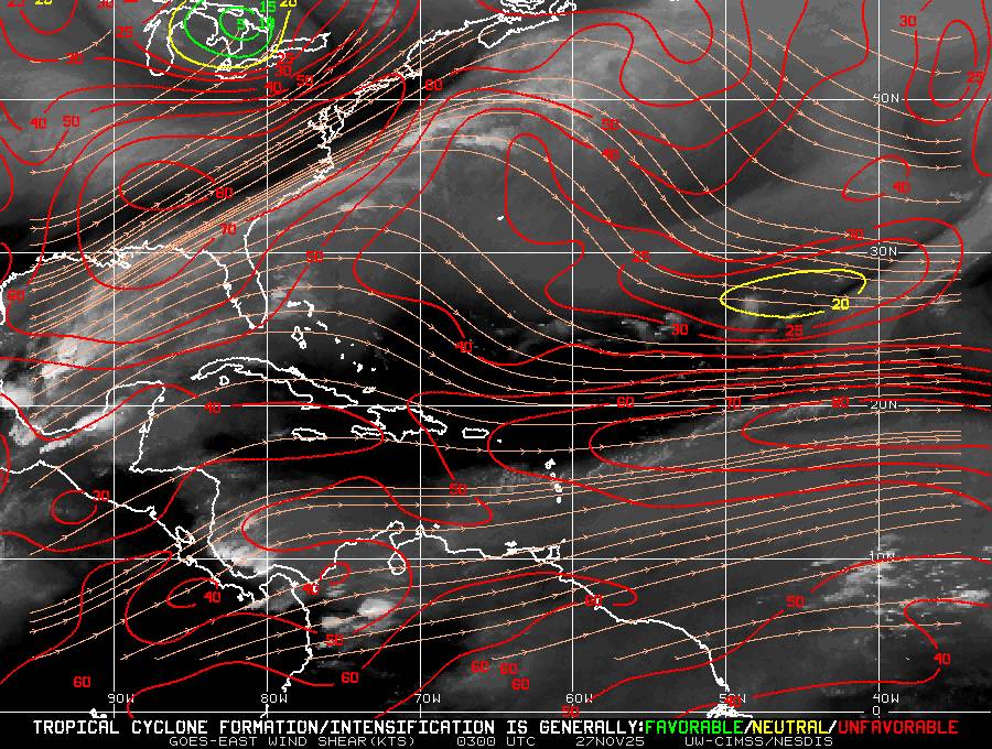 Il n’y a pas de cyclone ni de système surveillé par le NHC en Atlantique.