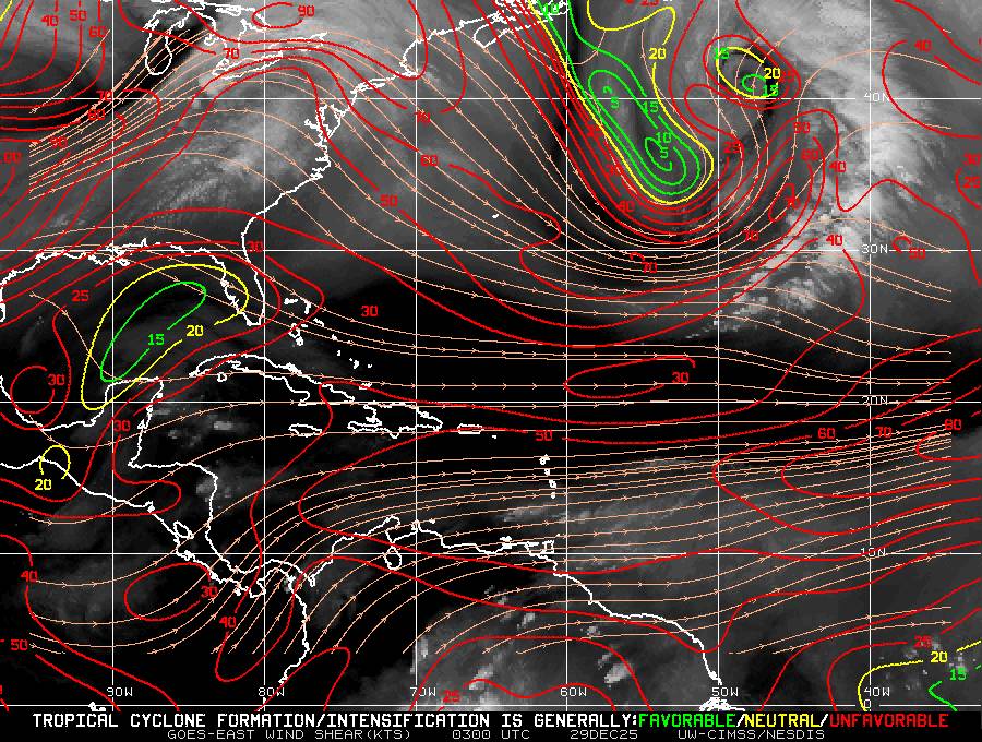 Il n’y a pas de cyclone ni de système surveillé par le NHC en Atlantique. Nous ne sommes pas actuellement en période cyclonique