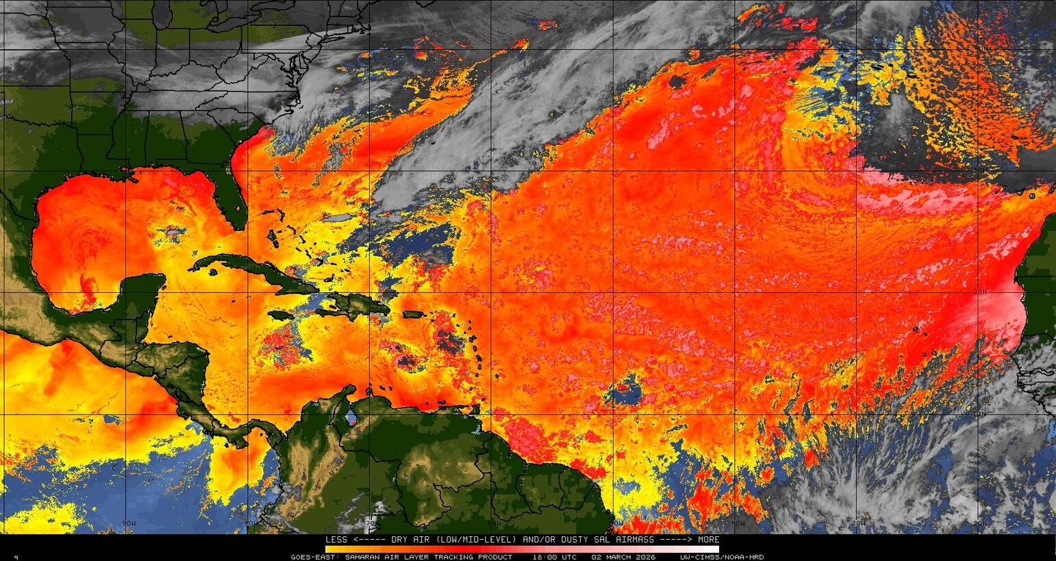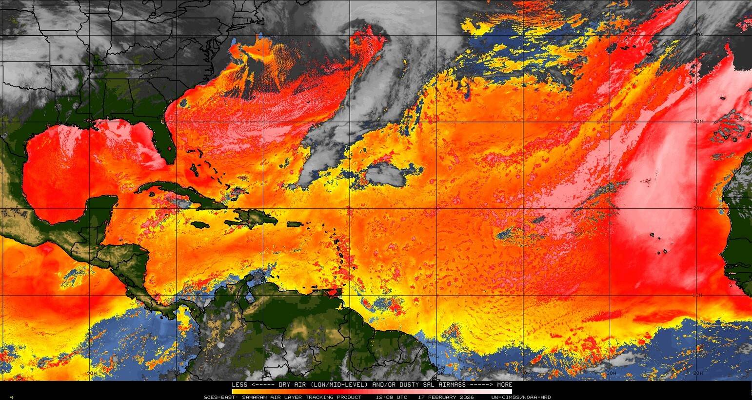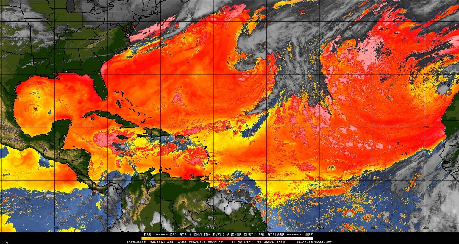 Il n’y a pas de cyclone ni de système surveillé par le NHC en Atlantique. Nous ne sommes pas actuellement en période cyclonique